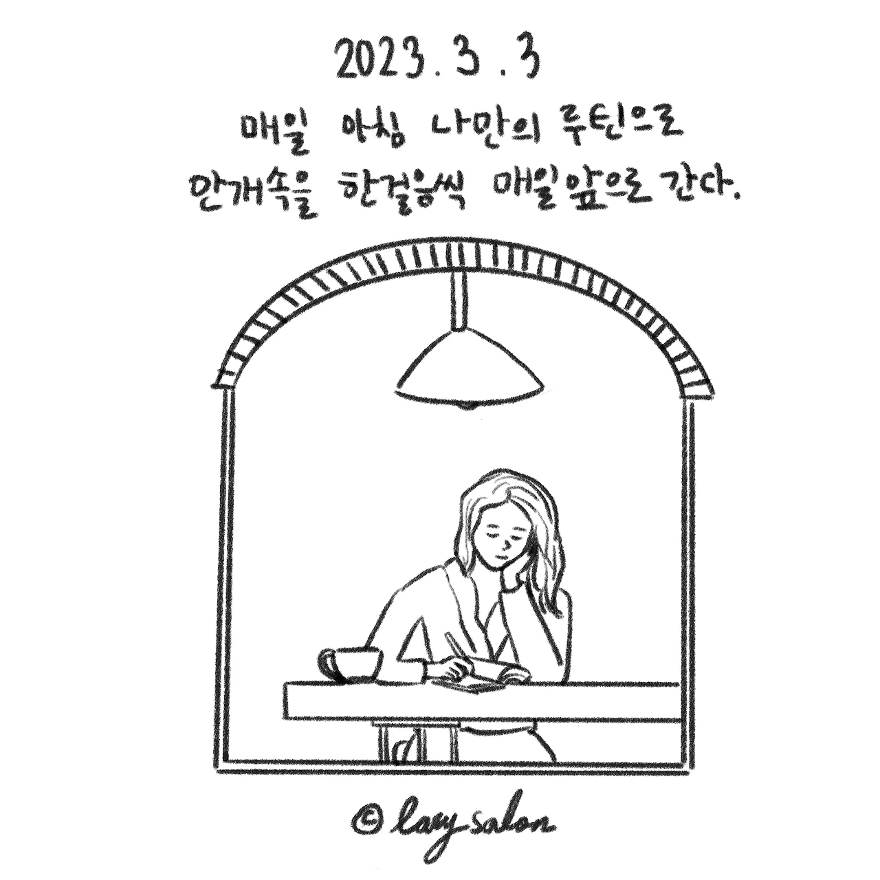 루틴이란 말이 처음엔 생소했다. 루틴이라는 걸 갖은 사람들을 보니 뭔가 좋아 보였다. 루틴이라는 말을 찾아보니 일상, 특정 작업을 실행하기 위한 일련의 명령이라고 되어있다. 내가 루틴을 만들기 시작한 건 자기 계발서를 읽고, 성공한 사람들의 인터뷰를 보고 난 후였다. 그들은 어떻게 성공할 수 있었을까를 들여다보니 모두 각자의 루틴이란 걸 갖고 매일 꾸준히 하고 있었다. 그들처럼 나도 나만의 루틴을 가져야겠다고 생각했다. 남들이 하고 있는 좋아 보이는 루틴을 따라 해 보았다. 부족한 운동을 하기 위해 매일 아침 계단 오르기도 해 보고, 나를 찾기 위해 매일 아침 일어나자마자 3페이지씩 모닝 글쓰기도 해보았다. 내가 해보고 싶은 것들을 방해받지 않는 시간에 지속하기 위해 지금은 매일 5시에 일어나 시필사를 하고 유튜브로 명리학 강의를 듣는다. 끝나면 6시 40분에 EBS라디오를 듣고 영어 낭독을 해서 SNS에 인증을 한다. 처음엔 성공하고 싶어 따라한 루틴이었지만 지금은 나의 삶을 좀 더 풍요롭게 하고 싶어서 시도 따라 쓰고, 명리학도 배우고 영어도 꾸준히 하고 있다.