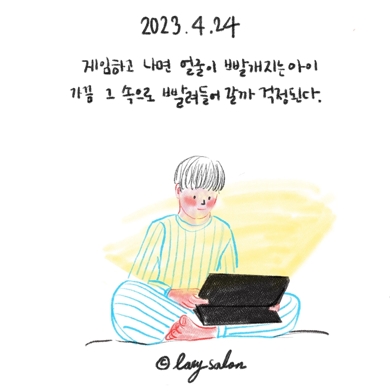 아들에게 주말 2시간의 게임시간을 허락하고 있다. 초등학교 1학년때는 2시간의 유튜브 시간이었는데 친구들이 많이하는 온라인 게임을 알게 되면서 게임시간으로 바뀌었다. 요즘은 친한 친구와 통화를 하며 게임을 하는 상태에 이르렀는데 남편은 그게 재미라며 그냥 두라고 했다. 요즘 로블록스라는 온라인 게임에 빠져있는데 친구와 1:1로 붙거나 여러 친구들과 편먹고 모르는 유저들과 게임을 하기도 한다. 뭔가 열심히 하는데 엄마인 나는 봐도 잘 모르겠다. 2시간이 지나고 아이 얼굴을 보면 볼과 귀가 뻘겋게 달아올라 있다. 처음엔 놀라서 이렇게 시켜도 되나 걱정을 하기도 했지만 얼마나 그 시간에 집중을 하며 했을까 싶어서 이해가 되기도 한다.