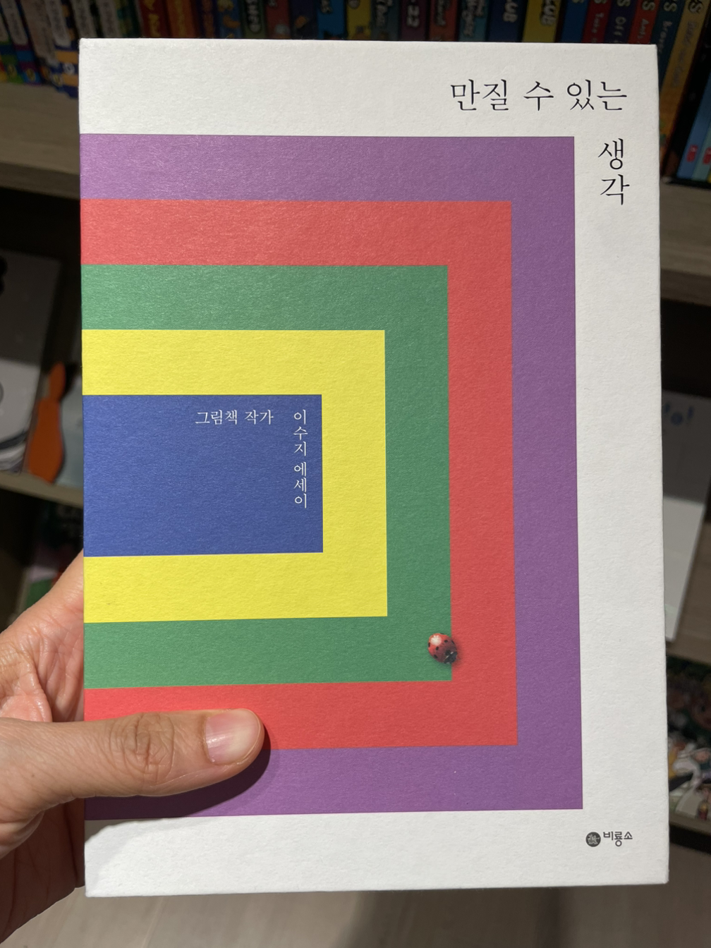 하나의 책이 나오기까지 그림책 작가만의 작업으로 끝나는 것이 아니라 편집자와 디자이너등 여러 사람이 온 힘을 쏟아 작업해야 비로소 세상에 책이 나온다는 사실도 알게 되었다. 얼마 전 나온 이수지 작가의 에세이 '만질 수 있는 생각'의 첫 페이지엔 나의 편집자에게(괄호 안에 특별히 몇몇 편집자의 이름을 언급되어 있다)라고 쓰여있다. 에세이를 통해 이수지 작가의 그림책 작가로서의 시작과 현재까지의 이야기를 들을 수 있었다. 처음 그림책을 시작한 계기, 해외에서 첫 책을 낸 이야기, 엄마로서 작업을 하는 이야기 등 책등이 노출 제본된 꽤나 두꺼운 책을 읽으며 책제목 ’ 만질 수 있는 생각‘에 동의하며 그녀의 이야기를 읽었다. 엄마이기도 하고 해외의 출판사와 일해 보고 싶은 마음도 있어서 그녀의 책이 현재의 나에게 꽤나 와닿았다.