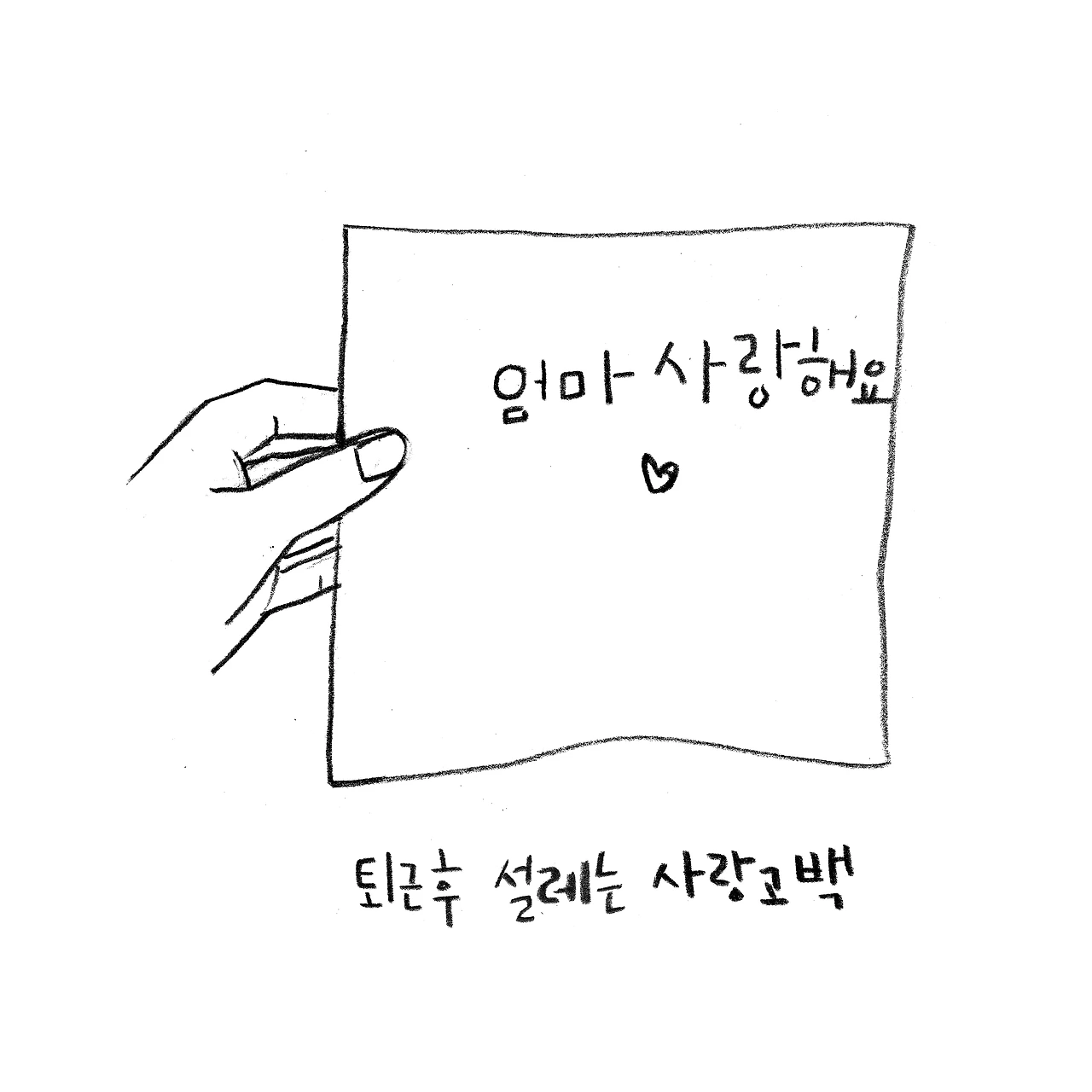 가끔씩 이렇게 뜬금없는 사랑 고백에 놀라 우와- 엄마도 너무너무 사랑해~ 하고 안아주면, 무언가 뿌듯한 일을 한 것 같은 얼굴로 안겨 있는 아이에게 고맙고 미안한 맘이 들었다. 해야 할 일에 치여 잔뜩 찌푸렸던 미간 주름이 잠시 펴짐을 느꼈다.