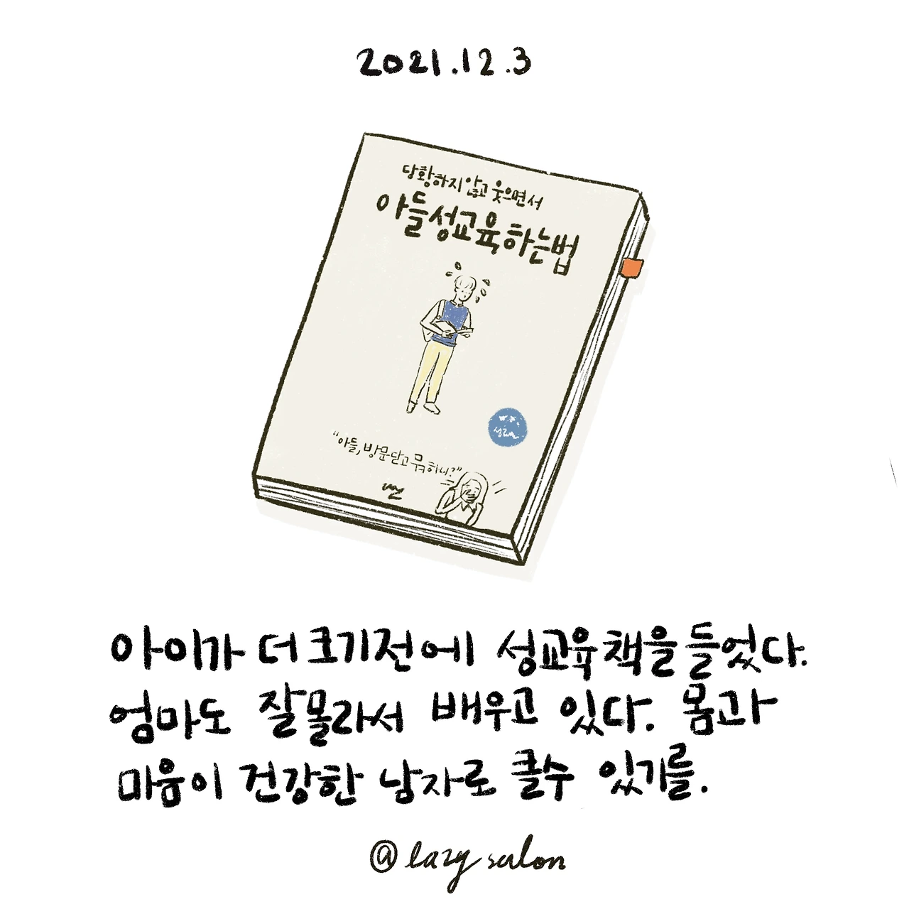 손경이의 '당황하지 않고 웃으면서 아들 성교육하는 법'이란 책을 읽고 있다. 성교육에 앞서 성적 자기 결정권과 상대방의 성대 애해 이해하는 젠더 감수성을 가르쳐야 한다는데 저자의 핵심 원칙이다. 요즘 젠더 감수성이 이슈화 되어가고 있는데 나는 상대방의 성에 대해 얼마나 알고 있는지도 생각해 보지 않았다. 왜 남성들은 여성을 알지 못하고 저렇게 이야기를 하는가에만 몰두하고 있었는데 이 책을 읽으면서 나 또한 모르고 살았구나 생각했다. 아들을 키우려면 엄마도 배워야겠다는 생각이 들었다. 아이가 어릴 땐 농담 삼아 남편에게 '아이 좀 크면 둘이 구성애 성교육 캠프 좀 다녀와'라고 이야기하곤 했는데 아이는 생각보다 빨리 크고 있고 성교육은 한 번에 끝내는 교육이 아니라 가정에서 부모와 계속 이야기하며 자연스럽게 가르쳐야 한다는 걸 알았다. 몸과 마음 모두 건강한 남자가 될 수 있도록 엄마도 공부하고 있다.