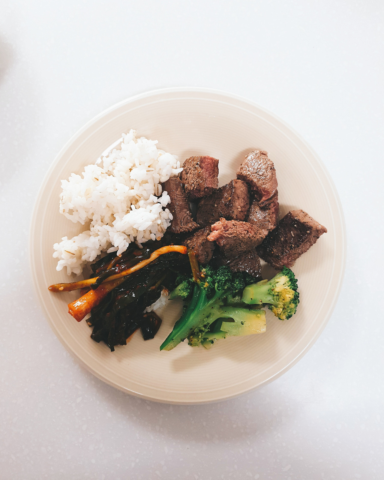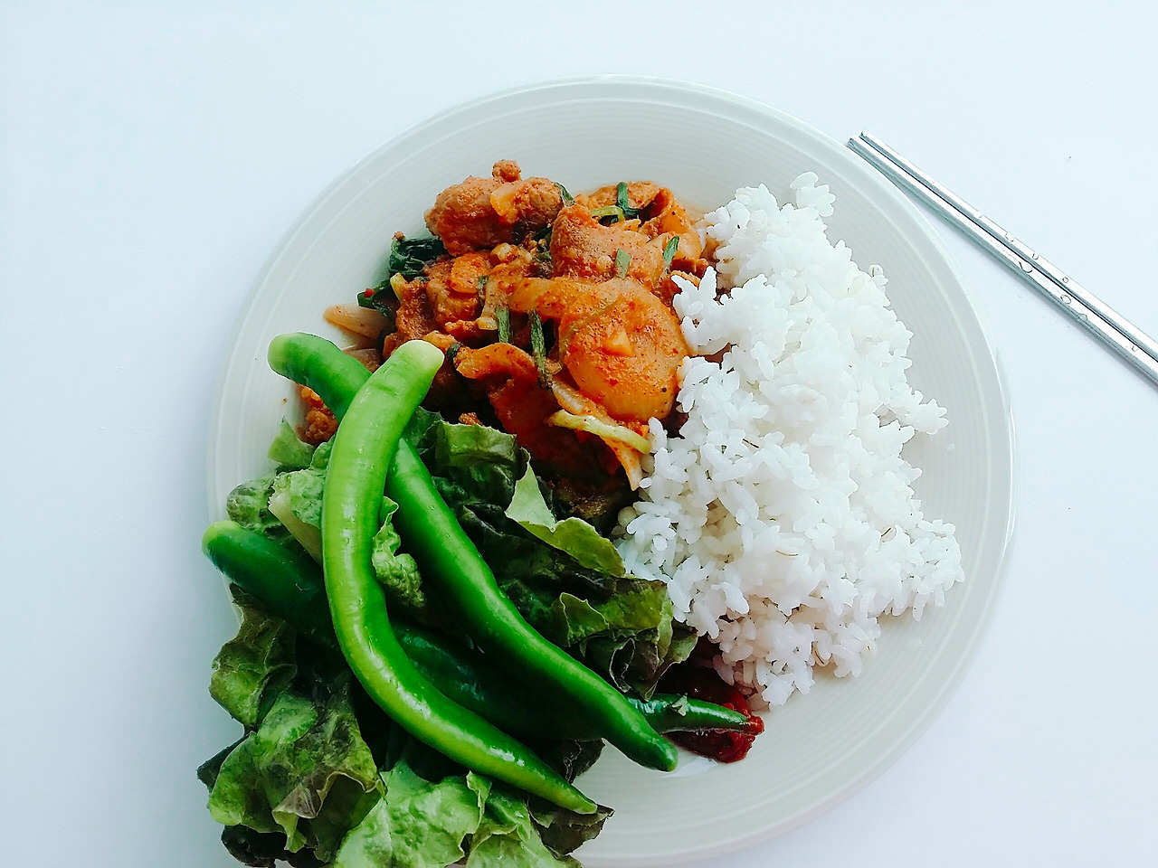 밥상을 차리는 것도 간단해졌다. 밥에 국이나 찌개, 밑반찬을 펼쳐놓고 먹는 한식은 훌륭하지만 내겐 다소 번잡하다. 밥과 반찬을 먹더라도 한 접시에 조금씩 담아서 먹는다. 구성은 주로 메인반찬 하나에 채소류를 조금 곁들이는 식이다. 어떤 요리를 할까 보다 가진 재료 내에서 최대한 균형 있고 맛있게 먹고자 노력한다. 식비와 식재료 쇼핑에 드는 에너지가 줄었고 먹는 행위에 대한 본질이 남았다. 간소한 밥상은 대강 차린 밥상이 아니다. 불필요한 것들을 거둬내고 가장 중요한 것에 집중하는 일이다. 어려운 레시피나 고급 재료는 없지만 나를 대접하는 마음이 밥상에 오른다. 내 안으로 들어가 나를 만드는 음식들, 낭비 없이 잘 다루어야 한다. 식기는 가장 자주 쓰이는 중접시 두 개, 파스타나 카레 볼 한 개.