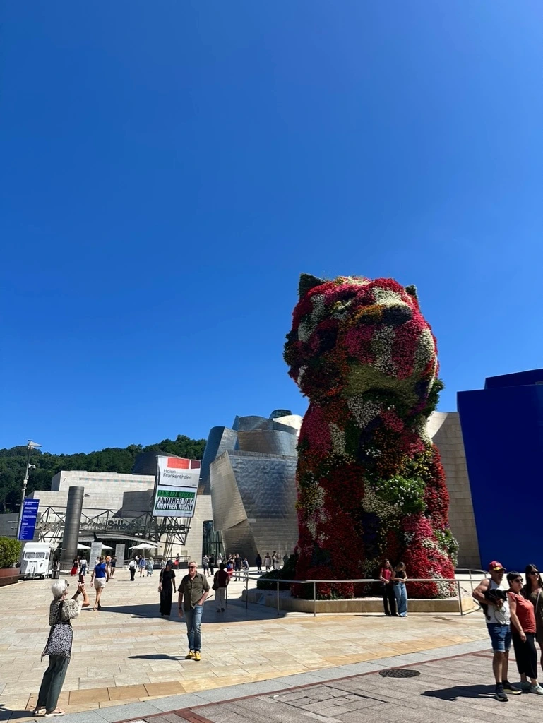 도심을 가로지르는 네르비온 강가에 위치한 구겐하임 뮤지엄은 2-3시간 정도면 돌아볼 수 있는 적당한 규모의 미술관이었다. 명성처럼 그 자체로 번쩍이는 티타늄에 둘러싸인 독특한 건물이지만 앞마당엔 그 존재감을 압도해 버리는 거대한 제프 쿤스의 Puppy 조형물이 포토존으로 쓰이고 있다. 모두 예쁘게 입고 한껏 포즈를 취하고 있는 곳에서 비록 등산복 차림이지만 옆 사람에게 부탁해 나도 사진을 하나 남겨보았다.