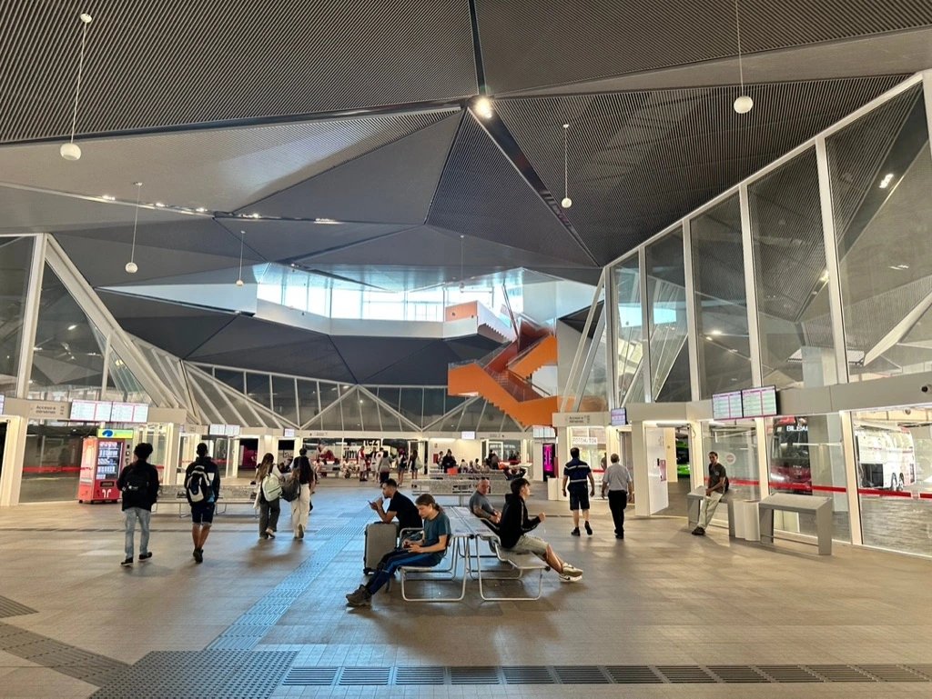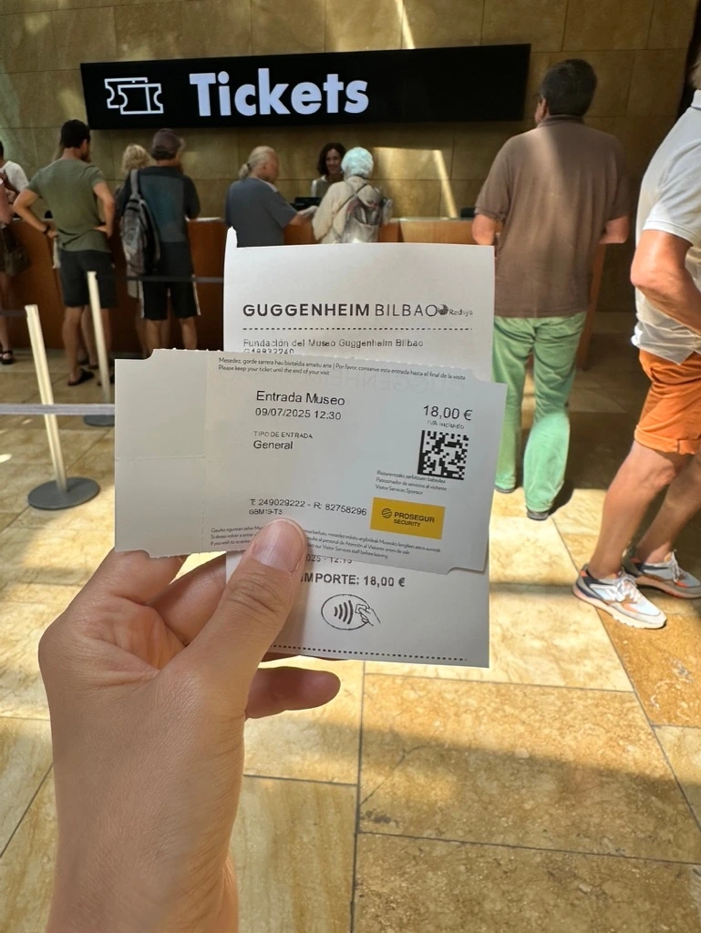 이곳의 방문 목적이기도 한 구겐하임 뮤지엄(Guggenheim Museum)까지는 트램을 타고 가기로 했다. 무인 발권기에서 티켓을 뽑아 인증사진까지 찍고 탑승했는데, 승차 태그를 탑승 후가 아닌 정거장에서 했어야 했다. 뜻하지 않게 무임승차를 해버렸다.