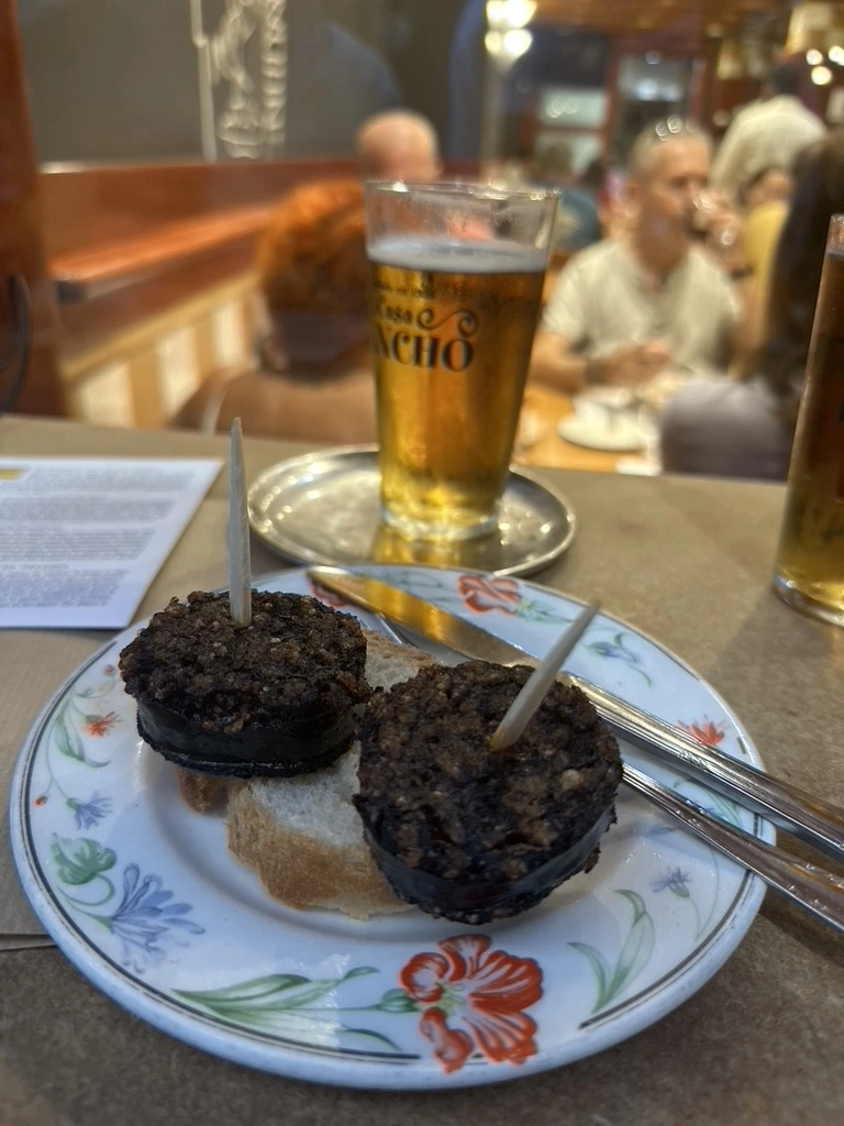 미사 후엔 낮에 처음 만난 한국분들과 타파스 거리로 나갔다. 결정장애가 있는 내게 타파스바는 난감한 장소다. 알 수 없는 수많은 메뉴들은 선택을 더 어렵게 했다.. 한참을 주변 사람들은 무엇을 먹는지 두리번 거리다 부르고스가 순대처럼 생긴 모르씨야(Morcilla)가 유명한 곳이라고 하기에 그것을 주문해 보았다. 고심끝에 선택했는데 음 그냥 순대를 기름에 지진 맛이다. 아무래도 나는 미식가는 아닌 것 같다.