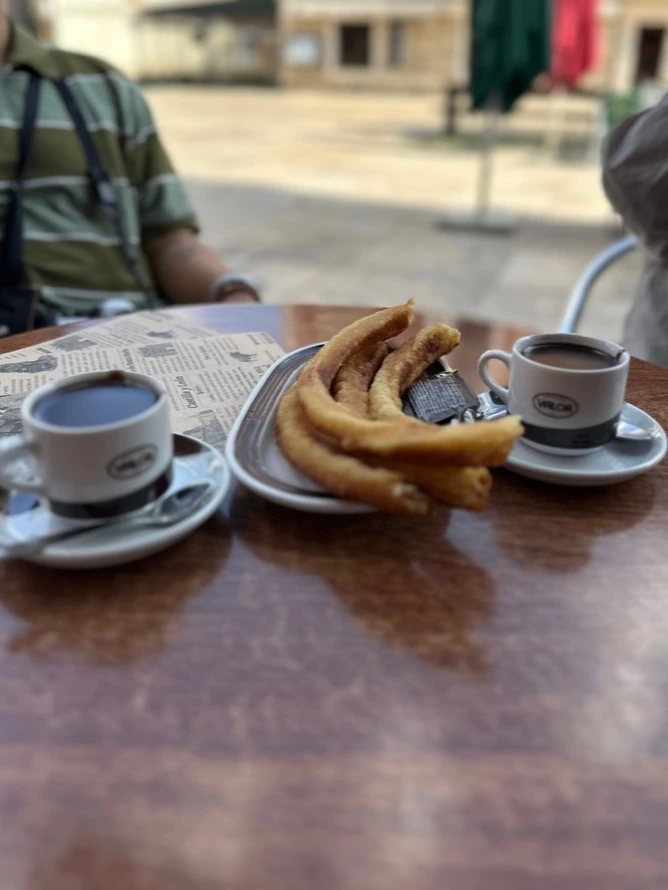 식사를 마칠 때쯤 다른 한국 분을 만나 넷이 함께 부르고스 구경을 나가게 됐다. 성당 앞 광장을 지나는데 신문 이미지에 사진을 합성해 주는 사진사가 서비스라며 우리 사진을 찍어 건네준다. 그냥 받기 미안해서 돈을 내고 한 장을 더 찍었다. 서로 만난 지 한 시간 남짓인데 건네받은 사진 속에 넷이 가족처럼 다정하게 웃고 있다. 근처 츄러스 맛집을 들러 테라스에 앉아 먹고 있는데 시티투어버스가 바로 앞에 정차했다. 이곳이 출발지인듯했다. 다가가서 운행 시간을 물어보니 곧 출발이었다. 함께 있던 분들에게 권해보았는데 아무도 관심이 없어서 혼자 다녀 오기로 했다.