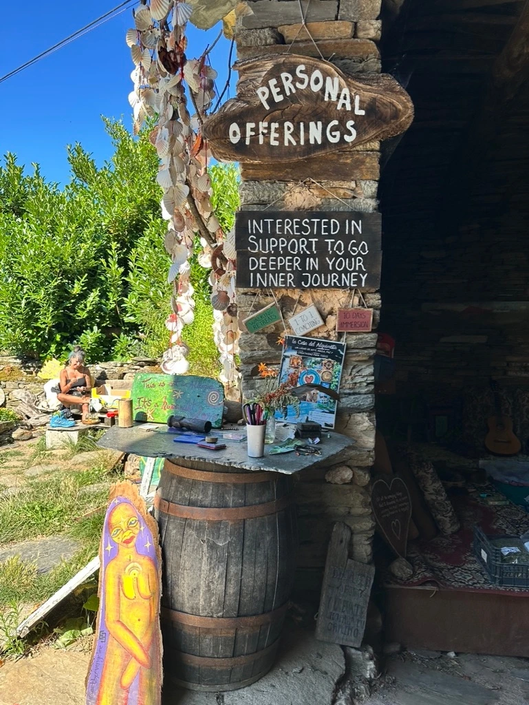 초반에 속도를 내는 패턴대로 걷다 보니 혼자 앞서게 됐다. 수도원을 거쳐가는 길의 풍경이 훨씬 좋다는 후기를 보아서 내가 걷는 길에 대한 큰 기대는 없었는데 중간에 만난 비석에 이 길이 훨씬 낫다고 쓰인 낙서를 보고 기분이 좋아졌다. 뭐가 더 좋은지는 모르겠지만 너른 들판에 소도 있고 요가를 가르쳐 준다는 독특한 도네이션 알베르게도 있고 나름 볼거리가 있긴 했다. 한참 속도를 내다 힘이 떨어져 쉬엄쉬엄 걷다보니 앰버 커플과 다시 만났다. 둘은 순례자 여권에 그림을 그려주는 곳을 다녀왔다며 나를 계속 불렀지만 듣지 못하고 멀리 걸어갔다고 했다. 산실 코스에서 꼭 들려야 하는 곳이었는데 그걸 놓치다니.