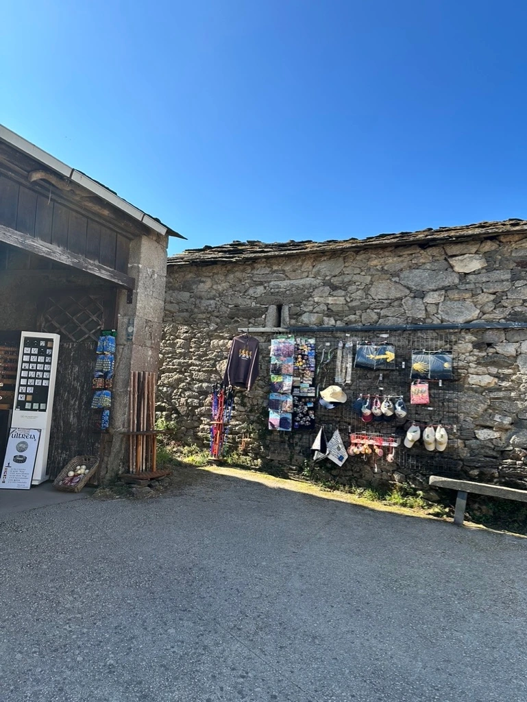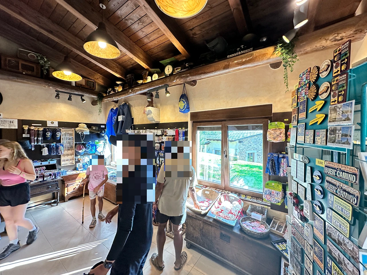 어제까진 출발 시간이 늦으면 길이 한산 했는데 오늘은 9시에도 순례길을 걸으려는 사람들로 가득했다. 기대에 찬 얼굴과 새하얀 피부, 깨끗한 운동화와 배낭. 사리아부터 시작하는 사람들은 한눈에 알아볼 수 있다. 북적북적하고 시끌벅적한 길의 곳곳에 왁스 스탬프를 찍어 준다는 테이블이 놓여 있었고 도장을 받기 위한 줄이 길게 늘어져 있었다. 아침을 먹기 위해 들린 바는 기념품 가게인지 식당인지 헷갈릴 정도다. 작은 마을의 골목을 돌아설 때마다 기념품 가게가 보였다. 하루 사이에 달리진 풍경에 기분이 묘했다.