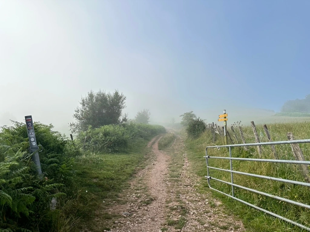 어제 숙소 주인이 내일 일정을 대강 브리핑해 주었는데 나 빼고 모든 사람들이 일찍부터 준비했기 때문에 알려준 시간보다 일찍 모임이 시작되었다. 서둘러 합류해서 함께 기도하고 서로의 안녕을 빌어준다. 론세스바예스가 목적지인 사람들은 바로 숙소를 떠나고 나는 일부러 늦장을 부려 7시쯤 꼴찌로 숙소를 나왔다. 전날 더위로 걱정했던 것과 달리 새벽녘부터 보슬비가 내려 기온이 많이 내려갔다. 날이 흐려 선크림을 바르지 않고 얇은 바람막이를 챙겨 입고 나섰다. 스틱을 펼쳐 바닥을 짚어본다. '이제 진짜 시작이다!'