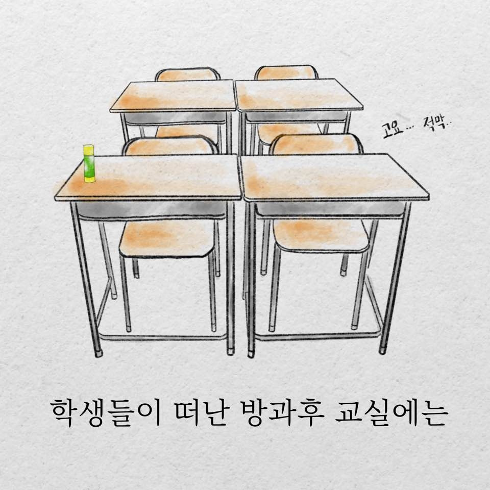 담임교사로 하루를 치열하게 보내고, 귀여운 학생들이 썰물처럼 빠져나가면 고요한 교실이 갯벌처럼 눈앞에 펼쳐진다.