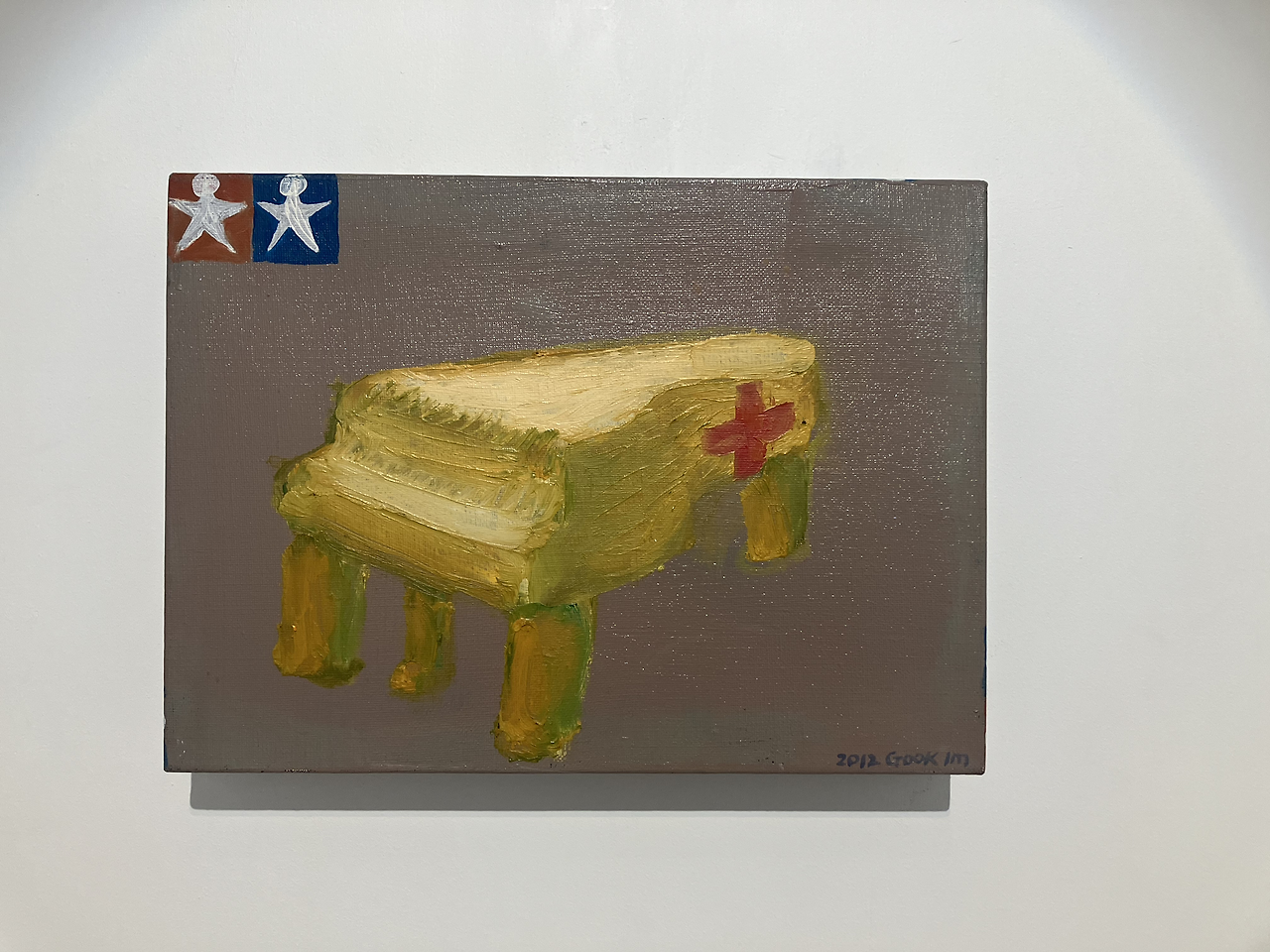 이런 장난감 무기의 특징을 잘 이용한 작가가 바로 부산에서 활동하는 임국 작가이다. 5월 10일부터 5월 24일까지 양정원 갤러리에서 진행되는 임국작가의 작품 가운데는 마치 장난감 탱크의 박스를 그린듯한 작품이 존재한다. 캔버스의 정면 귀퉁이에는 상표가 그려져 있으며 이는 측면 네 귀퉁이에도 그려져 있다. 우리는 이런 기표를 통해 장난감 탱크의 모습임을 인식한다.