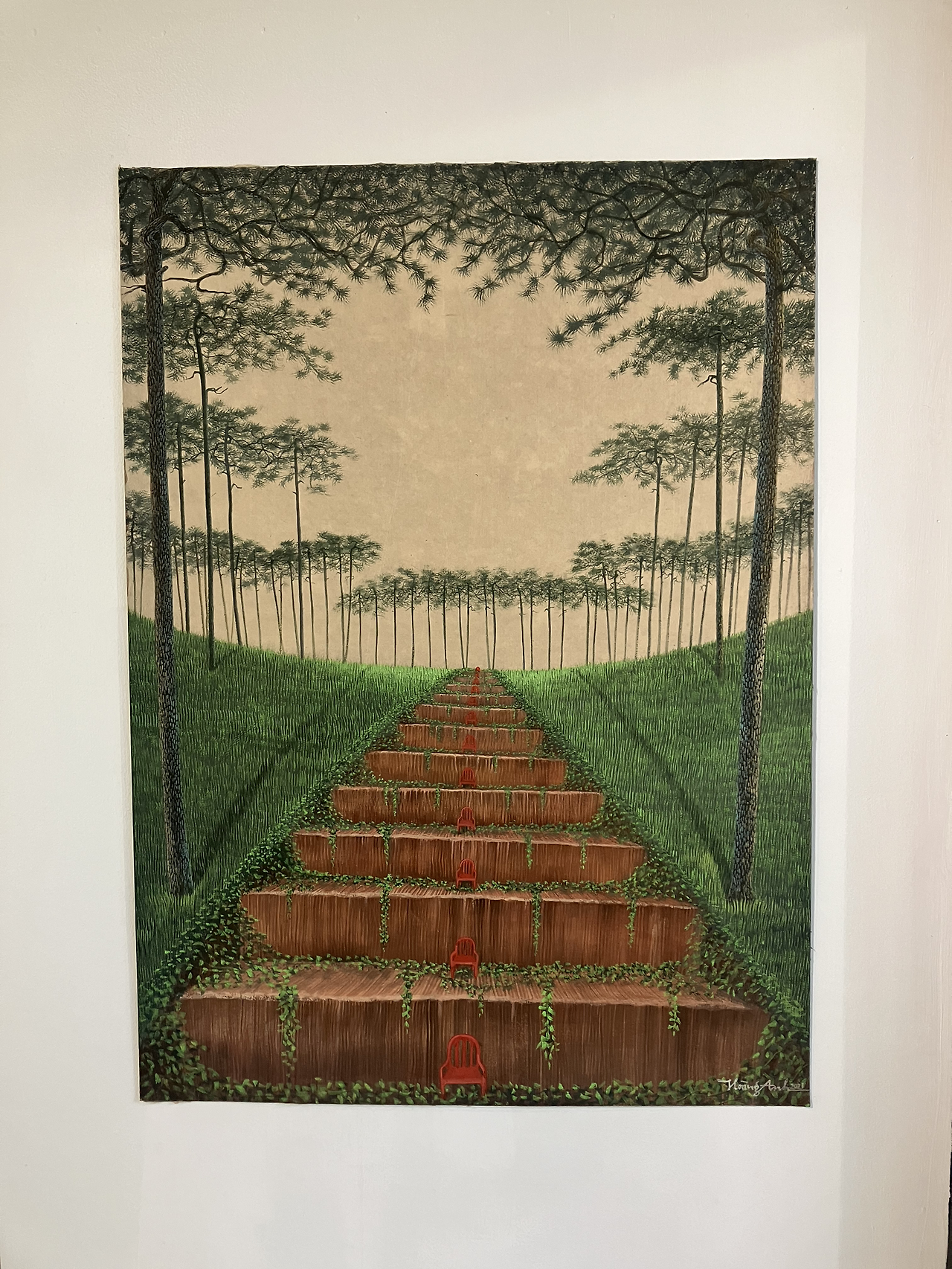 이런 달랏을 상징하는 이미지로 가득 찬 황안의 그림은 역설적으로 달랏에 없는 풍경이다. 작가는 달랏을 구성하는 물질들을 스스로 섞어서 새로운 풍경을 만들어낸다. 그러나 그 풍경들은 너무나도 달랏의 이미지로 다가온다.