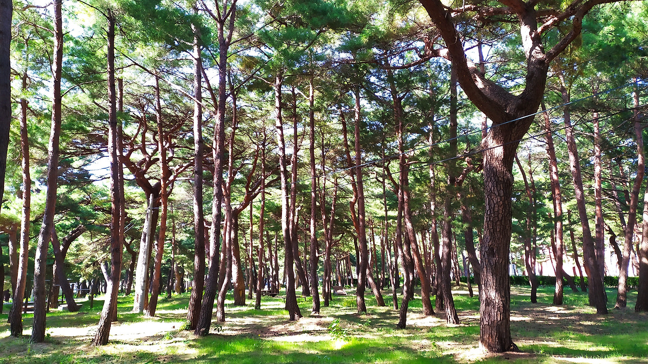멀리 보이는 산은 아직 물들지 않은 초록입니다만 늦가을 지나 한겨울, 잎 떨군 나무들이 앙상한 가지를 드러날 때 이곳의 소나무는 넓은 품을 펼쳐 차가운 바닷바람을 막아줄 것입니다.그리고 흰 눈 쌓인 자태로 아름다운 설경을 보여줄 것입니다. 그때 저는 이곳에 없겠지만.