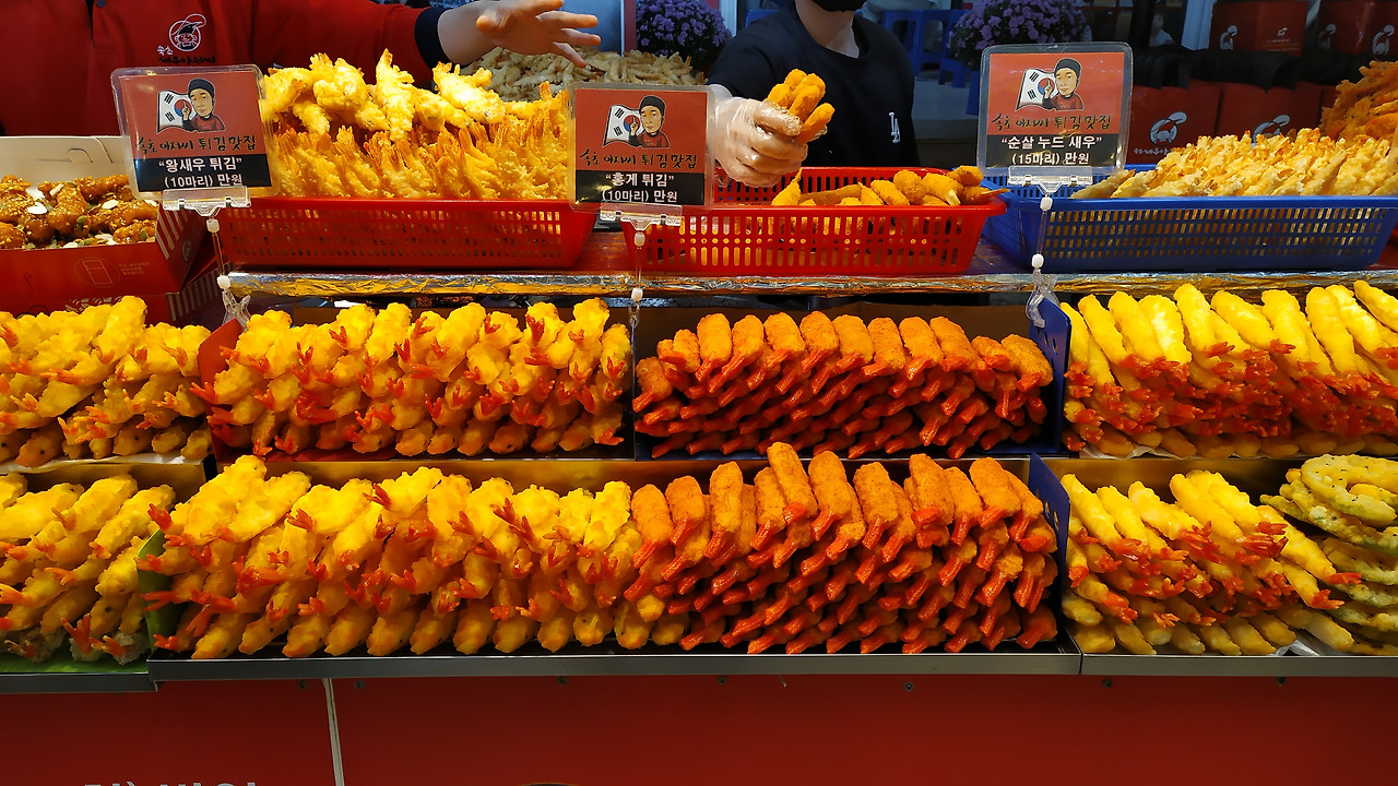 회를 먹지않으니 저는 맛을 모릅니다만, 회가 찰지다는 남편의 참신한 표현까지 나오는 걸 보니 어지간히 맛있었던 모양입니다. 저는 회를 못 먹었지만 시장을 나오는 길에 제가 좋아하는 왕새우 튀김을 열 마리 샀으므로 만족스럽지 않을 수 없었습니다.