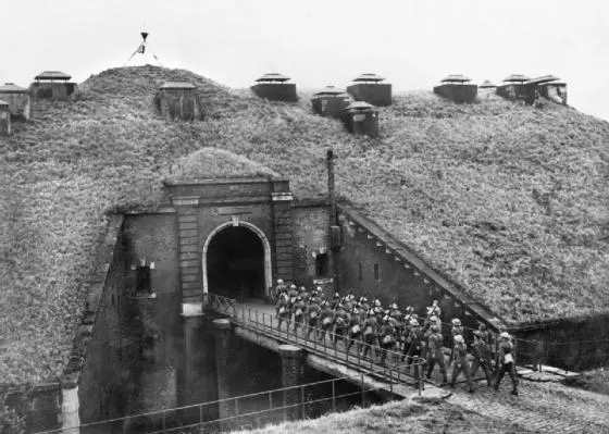 이와 더불어 프랑스는 1920년대 후반부터 장차 독일과의 전쟁이 일어날 가능성을 대비하여, 독일과의 국경 지대인 보주 산맥, 쥐라 산맥을 잇는 마지노 선이라는 장대한 요새를 건설하였다. 프랑스 국방장관이자 1차대전 참전 용사이기도 했던 앙드레 마지노(André Maginot, 1877-1932)의 건의에 의해 건설되기 시작한 이 요새는, 참호전 위주였던 1차대전의 전훈에 그 바탕을 두고 있었다. 프랑스 군부는 마지노선을 이용하여 독일군의 진격을 방어하고, 중립국인 벨기에, 네덜란드, 룩셈부르크 방면으로의 우회를 강요한 다음 이를 섬멸한다는 계획을 세웠다. 애초에 슐리펜 계획부터가 개전 초 독일군 병력을 벨기에, 네덜란드, 룩셈부르크 방면으로 집중시켜 프랑스를 조기에 항복시킨다는 계획이었고, 1차대전기에 독일군은 실제로 벨기에를 점령하여 프랑스 방면 병력을 통과시켰다. 마지노 선은 이에 대비하여, 벨기에 국경 방면에까지 요새를 구축하였다.