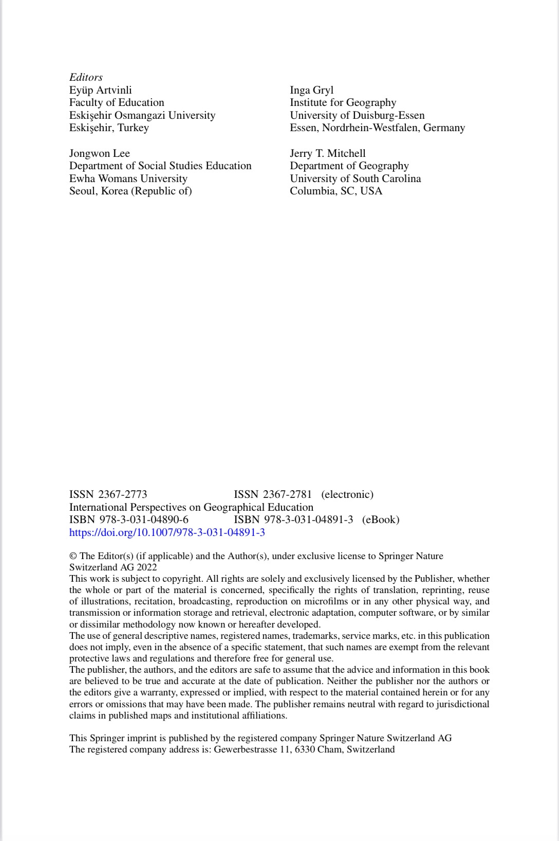 국제학술서적 Geography Teacher Education and Professionalization은 제가 편찬을 주도한 책은 아니고, 제가 챕터 하나를 작성한 편서입니다. 그래도 제 이름이 담긴 국제학술서적의 챕터가 나오니 좋네요. 조만간 제 이름이 담긴 영문 도서도 발간되었으면 하는 바램도 담아 봅니다.