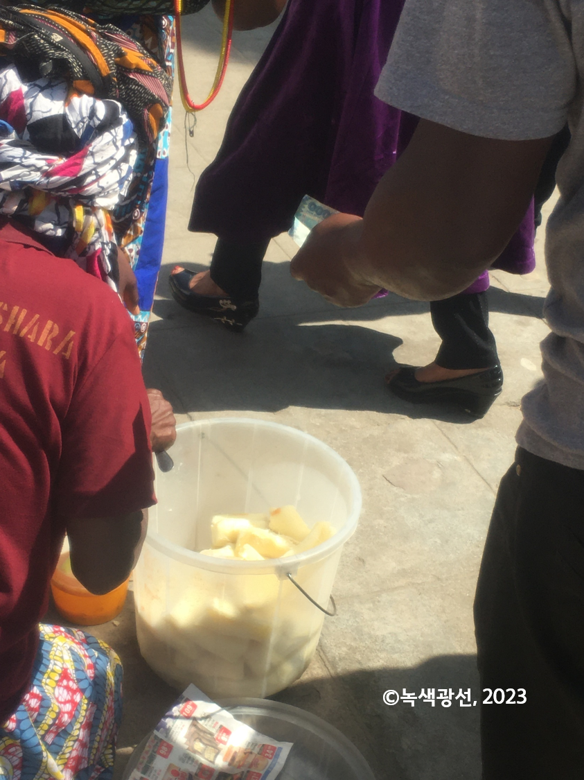 와니타와 식당에서 노닥이던 중 열차는 국경 인근에서 자꾸 멈췄다. 내려가서 좀 걷자고 그녀가 말한다. 이렇게 열차가 멈출 때마다 기차역 플랫폼 앞으로 나온 탄자니아 상인들이 엄청 많았다. 그들은 기차에서 내린 승객들에게 다양한 먹거리들을 팔았다. 튀긴 바나나, 건조한 검은빛 생선, 무슨 뿌리 식물을 쪄 놓은 것.