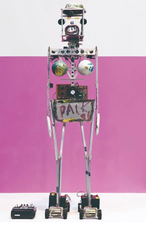 반골 기질이라고 해야 할까. 그는 기술이 인간을 어떻게 통제하는지 주목했다. 이런 기술 비틀기가 잘 반영된 작품이 그가 만든〈로봇 K-456〉으로 보인다. 이 로봇은 성기도 있고 똥도 싼다. 그는 미래에 기계와 인간이 융합하는 상태를 풍자했던 건 아닐까. 자본이 사회 주류를 잠식하고 과학이 발달할수록 오히려 인간은 자유의지대로 살기보단 주어진 역할과 기능을 수행하며 비인간화되고 있다.