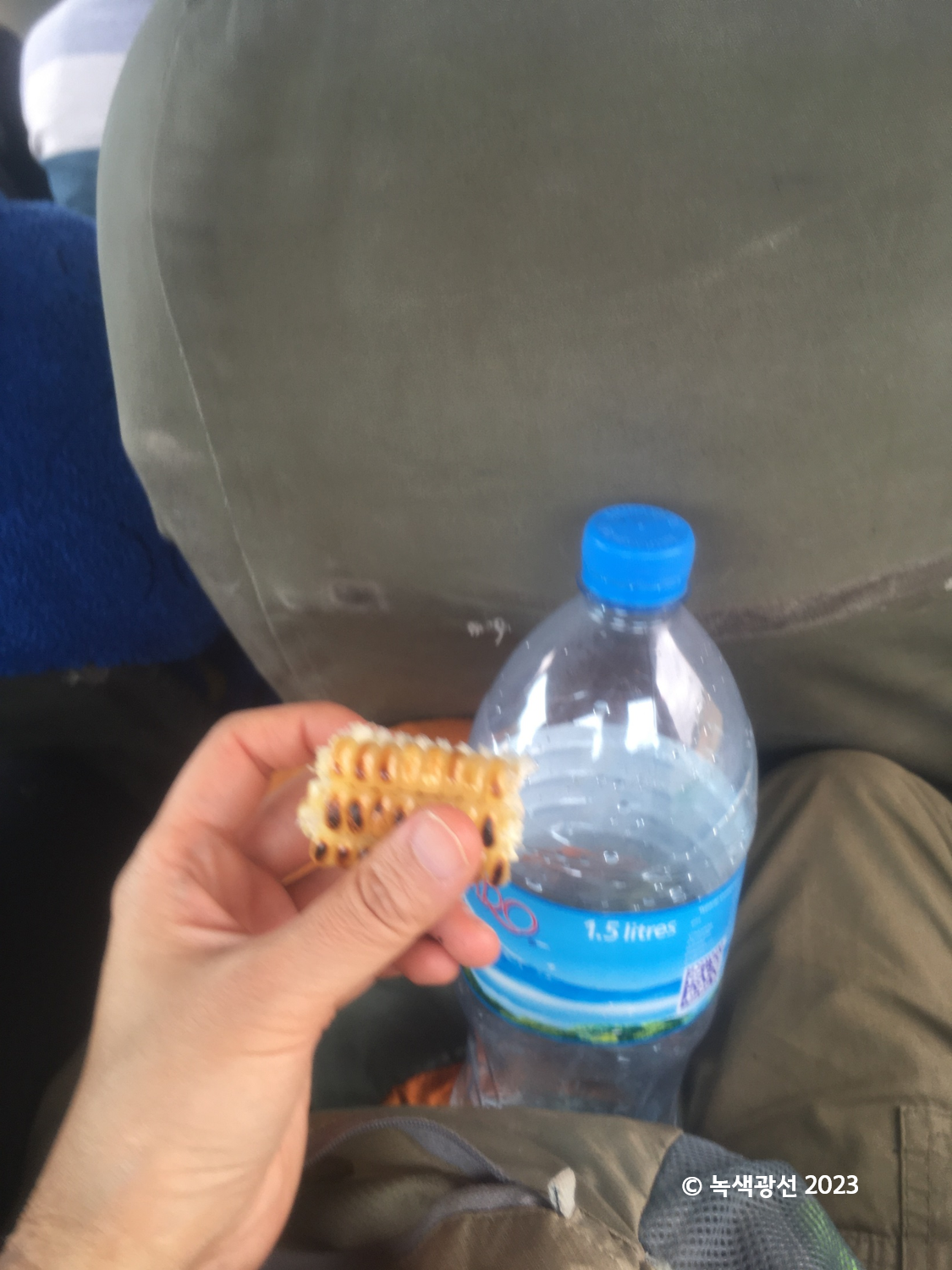 게다가 내 왼쪽에 앉은 퉁퉁한 아줌마는 휴게 지점에서 간식용 구운 옥수수를 사더니 내게 잘라서 나누어 주었다. 이게 이렇게 맛있는 줄 몰랐다. 개눈 감추듯 바로 먹어버리니 역시 이 아줌마도 내 손에 있던 빈 옥수숫대를 집어서 창문 밖으로 던져준다. 달라달라 승객 간 에티켓일까.