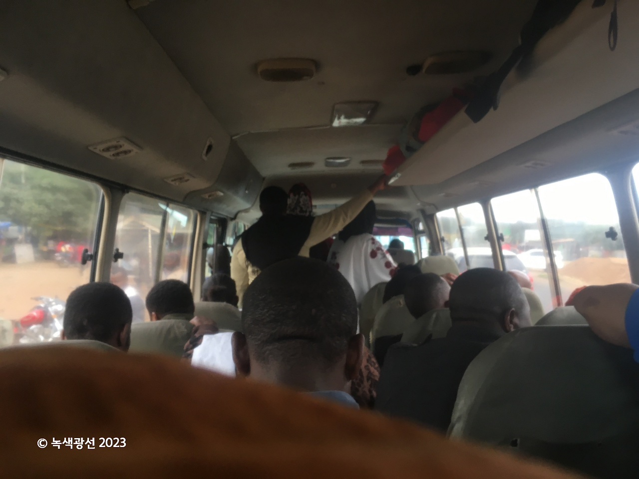 다만 문제는 배낭이었다. 현지인들과 섞여 버스에서 흘러나오는 신나는 음악을 들으며 시골길을 달리는 건 좋았지만 내 짐이 너무 많았다. 큰 백팩은 버스 위 선반에 들어가지 않으니 그걸 내내 작은 보조 배낭과 겹쳐서 두 손으로 안고, 두 발로는 1.5리터짜리 생수병을 끼어서 버텼다. 나 때문에 좁게 앉아야 하는, 좌우 옆 아프리카 여성들에겐 속으로 무척 미안했다.