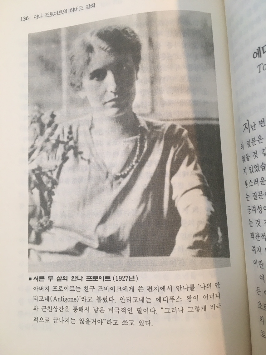 옛날에 이 책을 읽어봤던 이유는 순전히 이런 호기심 때문이었다. 전지전능해 보이는 아버지 밑에서 자란 자식은 나름 아등바등 성취를 하느라 얼마나 마음고생을 했을까? 20대 시절 내 관심사가 아마도 이 책을 샀던 행동에 투사되었으리라. 아직 제대로 된 일자리 하나 없는 젊은이로서 앞으로 먹고 살길을 마련해야 한다는 불안이 컸던 시기였다. 그래서 당시엔 새삼 안나 프로이트도 아버지만큼 꽤나 위대해 보였다.
