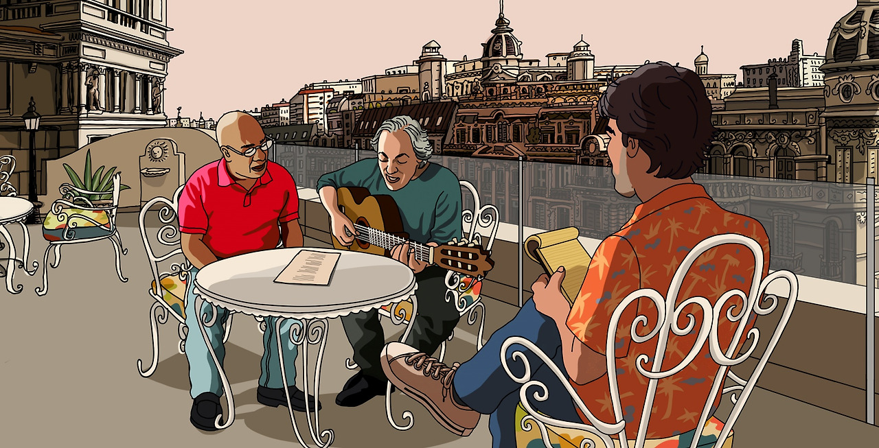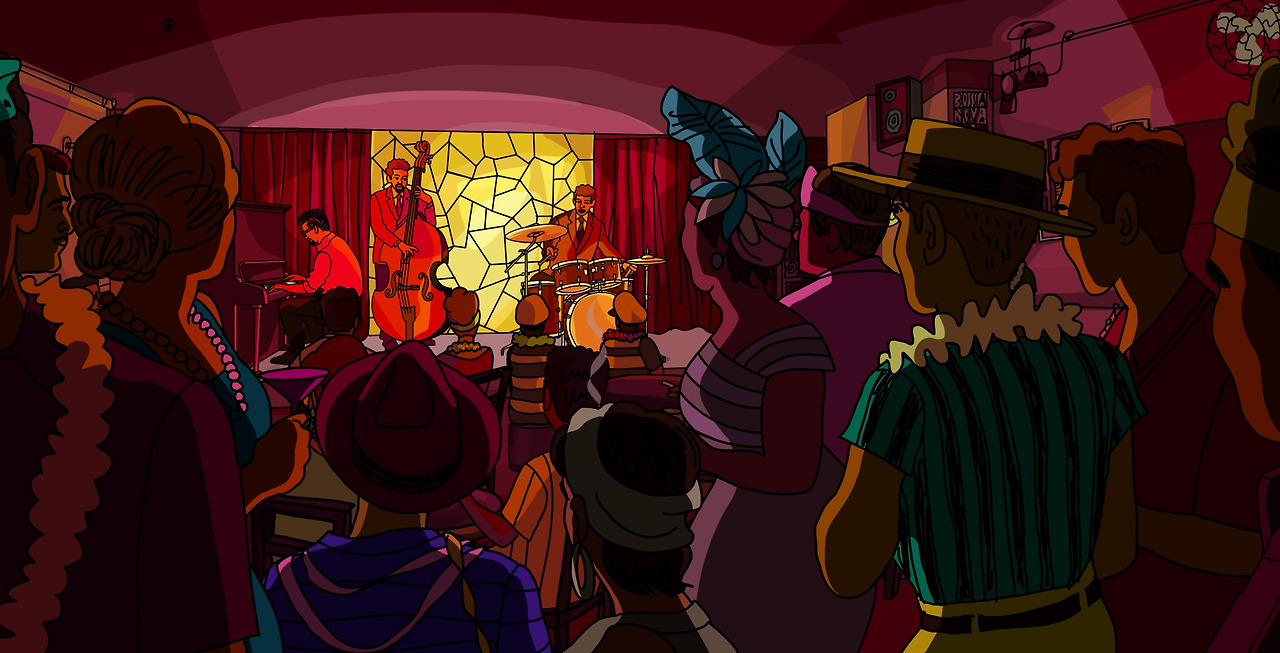 관객은 어떤 연주자의 생애를 따라간다. 타임머신을 타고 감미로운 재즈 선율이 남미의 따스한 공기를 채우던 시절, 그곳엔 오늘날 거장으로 불리는 보사노바 뮤지션들이 있었다. 조빔, 질베르토, 비니시우스... 애니메이션 화면 속에는 엘라 피츠제랄드가 하이힐을 들고 맨발로 거리를 누비며 클럽 공연을 다닌다. 무대 위 연주자들이 만들어내는 감미로운 멜로디, 파도처럼 넘실대는 선율을 타고 보컬이 읊조리는 가사, 스캣. 노랫말이라기보다는 한 편의 시가 심장을 파고든다.