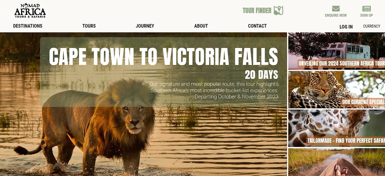 홈페이지 메뉴 오른쪽에 유명 현지 투어 회사인 Nomad Africa와 Africa Travel.co 로고가 보인다. 이 회사들이 주관하는 여행 상품을 찾아보았을 때 검색한 회사였다. 다만 트럭킹 여행을 하기엔 일정이 맞지 않아 실제로 문의해보진 않았다.