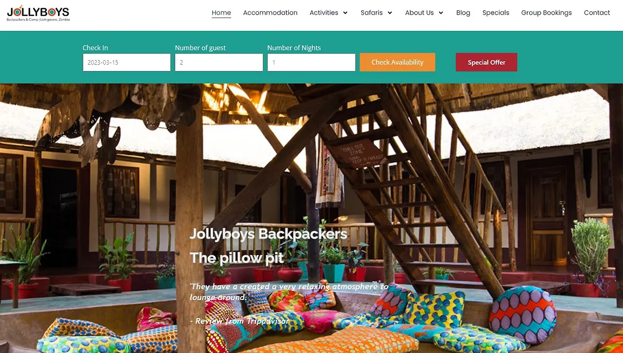 이곳은 숙박업소이기도 하면서 자체적으로 투어를 운영하는 곳으로도 유명하다. 여기는 잠비아(Zambia)에서 가장 유명한 관광명소인 빅토리아 폭포(Victoria Falls)가 있는 도시, 리빙스턴(Livingstone)에 위치한 호스텔이다. 온라인 예약을 마친 후 출발일이 가까워오면 온라인 체크인 요청 메일이 날아온다. 이때 여권정보 등 숙박인 정보를 입력해 주면 된다. 또한 온라인 체크인을 할 때 빅토리아 폭포를 즐길 수 있는 다양한 투어 상품(번지 점프, 래프팅 등)을 사전 예약할 수도 있다.