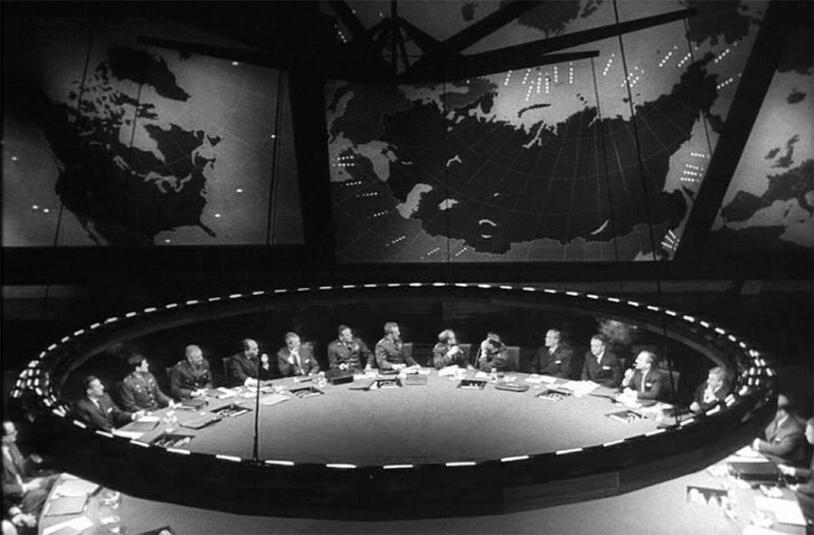 다들 군대 제복을 입고 있을 뿐, 제대로 자기 일을 하는 것 같은 군인은 보이지 않는다. 공군 고위 장교인 버크 터지슨 장군. 이 위중한 국가 비상 상황에 그는 비키니를 입은 여비서와 밀회를 즐기고 있다. 가까스로 대통령이 이 상황을 파악한 후 정부 고위층은 긴급 안보회의를 시작한다.