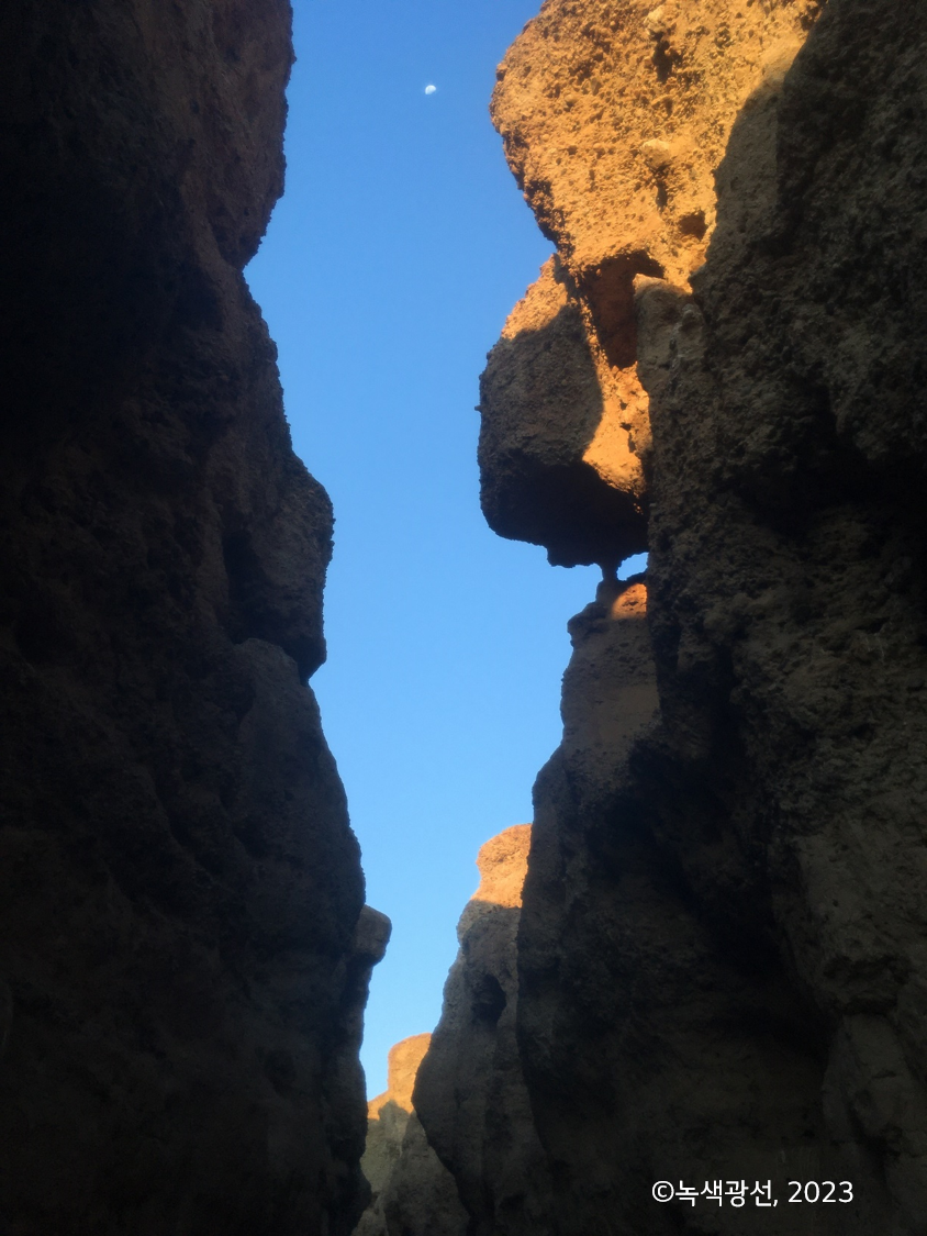 사막은 다 노란 모래들이 가득 찬 곳이라 생각했는데 흙 빛깔이 다르다. 붉은색, 뽀얀 살색, 황토색, 저 멀리 돌덩어리 산은 고동색. 이 척박한 땅에서 뿌리를 내디딘 저 나무들은 얼마나 강한가. 기어코 연두색 이파리를 토해내고야 마는 생명력에 감탄하며 졸음을 쫓았다. 저절로 생명이 위대한 걸 깨닫다니 자연 앞에선 누구나 철학자가 된다.