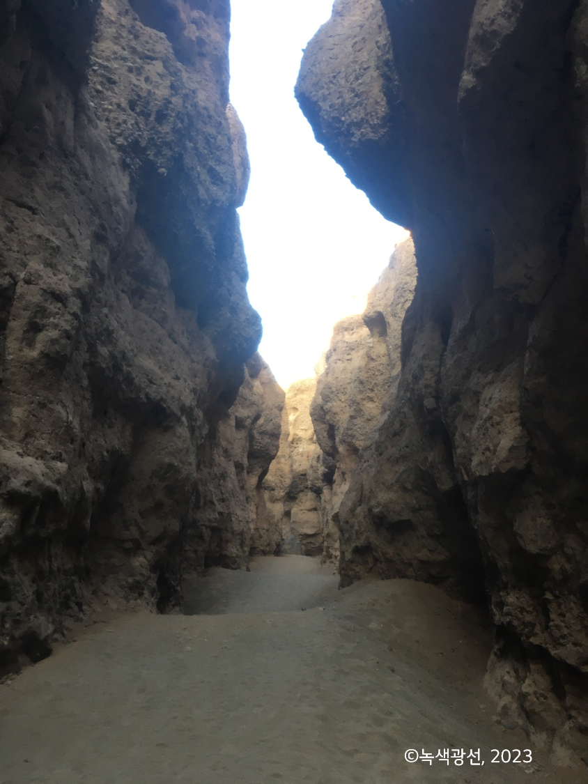 한낮에 제각각 텐트를 동굴 삼아 쥐 죽은 듯 쉬던 사람들이 더위가 가라앉자 하나 둘 기어 나온다. 이젠 세스림 협곡으로 향할 시간이다. 여행 중인 7-8월은 건기에 해당하므로 협곡엔 물이 없다. 우기에는 이 높고 깊은 협곡 내부가 가득 차서 협곡 천장 위까지 넘친다고 한다. 건기인 지금도 하이에나 등 야생 동물들은 밤마다 이곳 깊은 구석까지 약간씩 고여있는 물을 찾아온다고 한다. 물이 있는 곳을 찾아오는 건 생존 본능이니, 누구에게나 삶은 질기다.