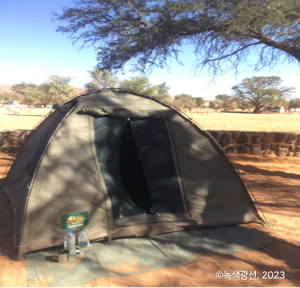 어젠 8시쯤 일찍 잠이 들었다. 빈트후크 석양을 구경한 후 곯아떨어진 채 새벽녘에 저절로 일어났다. 인터넷과 전화가 안 터지는 사막으로 출발하기 전날, 왓츠앱으로 결국 1등석 침대칸으로 타자라(TAZARA) 열차 예약에 성공하자 밀린 숙제를 해치운 듯 기분도 좋았다. 새벽에 일어나 비몽사몽인 채 아침식사를 욱여넣고 5시간쯤 투어 차량에 실려 세스림 캠핑장으로 달려왔다.