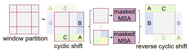 6. Cyclic Shift + Window Partition : 윈도우의 위치를 조정하고, 그에 맞게 윈도우 분할