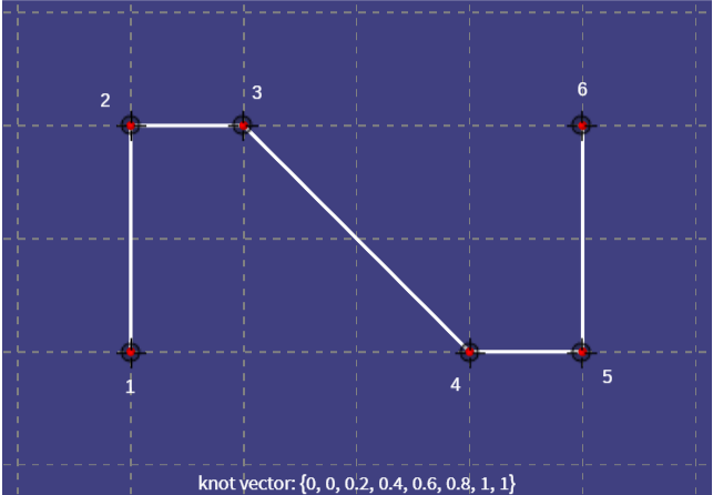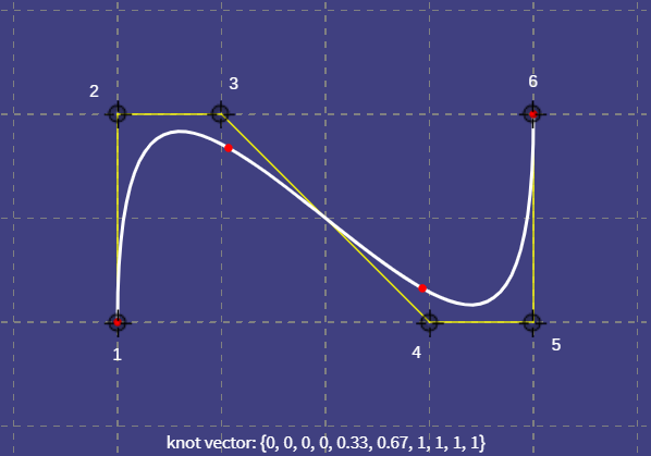 이를 그림으로 살펴보면 아래와 같습니다. 가장 일반적인 degree=3, control points=6인 케이스를 살펴보겠습니다.
