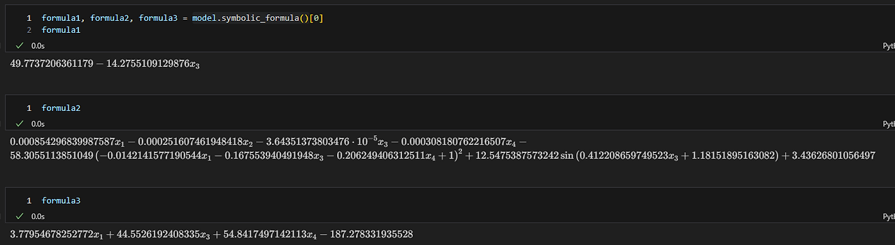 즉, 학습 초기 단계에서는 각 활성화 함수가 한 번에 충분히 작은 수의 점만을 설명하도록 함으로써 모델을 빠르게 초기화시킨 뒤, epoch가 진행됨에 따라 grid의 범위를 넓혀가면서 세밀한 최적화를 수행하는 방식입니다. 또한 이 과정에서 지수와 로그, 삼각함수 등을 이용해 각 과정들을 설명해야 하다보니 충분히 깊지 않은 KAN 모델은 설명력이 떨어질 수 있으며, 이러한 과정 자체가 학습비용 증가와 직결된다는 문제가 있기도 합니다. (때문에 GNN 등과 같이 상품 추천이나 통계적 개념이 적용되는 영역과 결합함으로써 모델의 설명가능성이라는 장점을 극대화시키는 방향으로 개발하는 것이 나을 것 같기도 합니다)