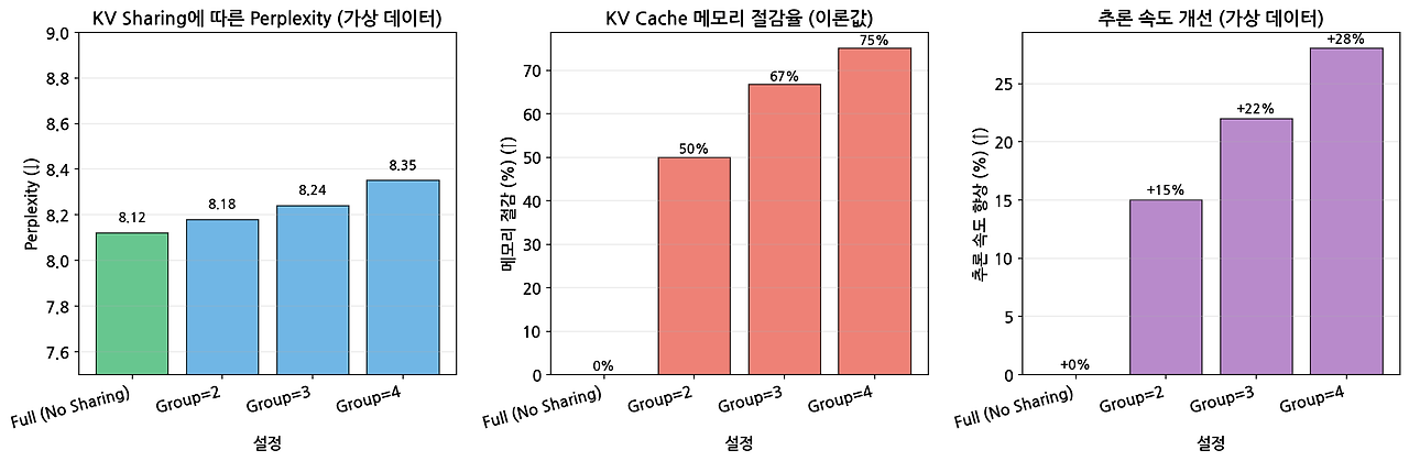 이에 대한 근거는 인접한 레이어 간의 KV Cache가 거의 유사했다는 기존의 실험 결과에 기반합니다 (본 논문과는 관련성이 떨어지지만 이와 관련해서 최근 여러 모델 간의 소통을 이러한 중간 cache를 통해 정보를 주고 받는 방식에 대한 연구가 꽤 활발하게 이뤄지고 있으며, 효과가 어느정도 입증되기도 했습니다). 개인적으로 추측컨데, 이는 residual connection으로 인한 레이어 간 유사성이라는 특징으로 인한 것으로 보여집니다. 잔차 연결이라는 방법은 딥러닝 모델이 그 이름답게 모델이 깊고, 복잡해질수록 성능이 향상되는 것을 담보하는 역할을 했지만, 반대로 각 레이어들이 이전 레이어와 아주 미세한 차이만을 만들어내도록 학습되는 문제가 발생하기도 했습니다. (이로 인해 2026년 현재에는 이러한 residual connection이 딥러닝 모델들의 성능을 비효율화한다는 주장이 제기되었으며, residual connection을 대체하기 위한 구조가 제안되고 있기도 합니다)
