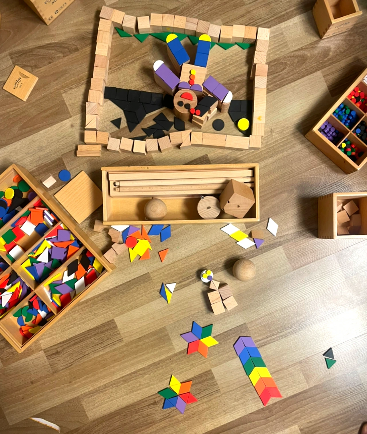 아이의 작은 손이 가베 조각을 신중하고도 분주하게 옮기는 모습을 가만히 들여다봅니다. 순간, 이 도형들이 품은 수학적 원리를 알려주고픈 어른의 조급함이 고개를 들지만 이내 마음을 내려놓습니다다. 아이들을 키우며 깨달은 것이 있습니다. 누군가의 가르침이 오히려 아이 스스로 깨우칠 기회를 막을 수도 있다는 것을 말이죠. 어쩌면 칸딘스키의 점, 선, 면의 원리는 아이들에게 너무나 직관적이어서, 섣부른 가르침이 오히려 내적 필연성에 따라 자신의 세계를 쌓아가는 과정을 방해할지도 모릅니다.