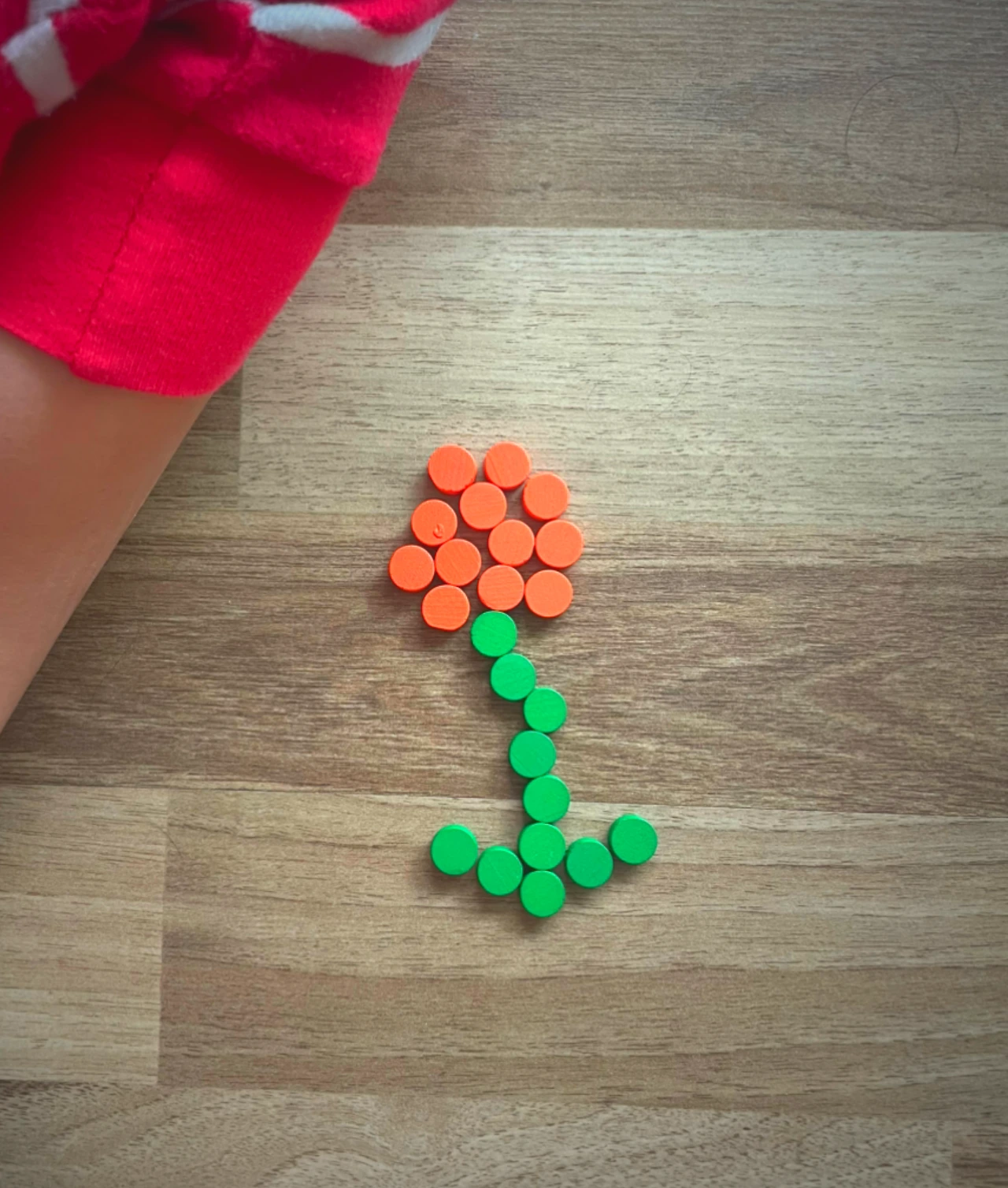 아이의 놀이 흔적에서 보이는 이러한 시각적 특징들은 칸딘스키의 1926년 작, '구성 VIII'(CompositionVIII)과 놀랍도록 닮아 있습니다. 이 작품은 칸딘스키 스스로가 전후 작업의 정점이라 이야기한 작품으로, '캔버스 위에서 펼쳐지는 형태와 색의 춤'이자 '혼돈 속의 조화를 창조하는 시각적 교향곡'으로 불립니다. 밝은 배경 위 기하학적 형태로 역동적인 상호작용을 보여 주는 칸딘스키 작품처럼, 아이의 가베 작품 또한 나름의 논리를 지닌 완성된 하나의 우주처럼 여겨지지 않나요?