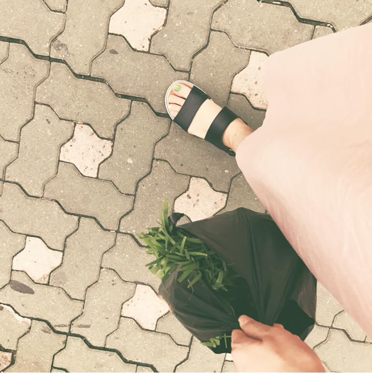 어쩌면 나는 삐죽 나온 커다란 채소들을 들고가는 것을 '시장 보기'의 대명사처럼 생각해서, 그 모습의 나를 대견하게 느끼는지도 모르겠다. 부추 자체보다도 그걸 들고 갈 때의 나 스스로가, 어색하지만 열심히 하려고 하는 새댁 같아서 좋았던 것 같기도 하다. 그렇다면 나는 아무래도 새댁을 위한 이미지 소비를 하고 있는 건가. 그럼 어때. 1,500원으로 할 수 있는 소비 중 이보다 더 큰 효용은 없을 것 같다.