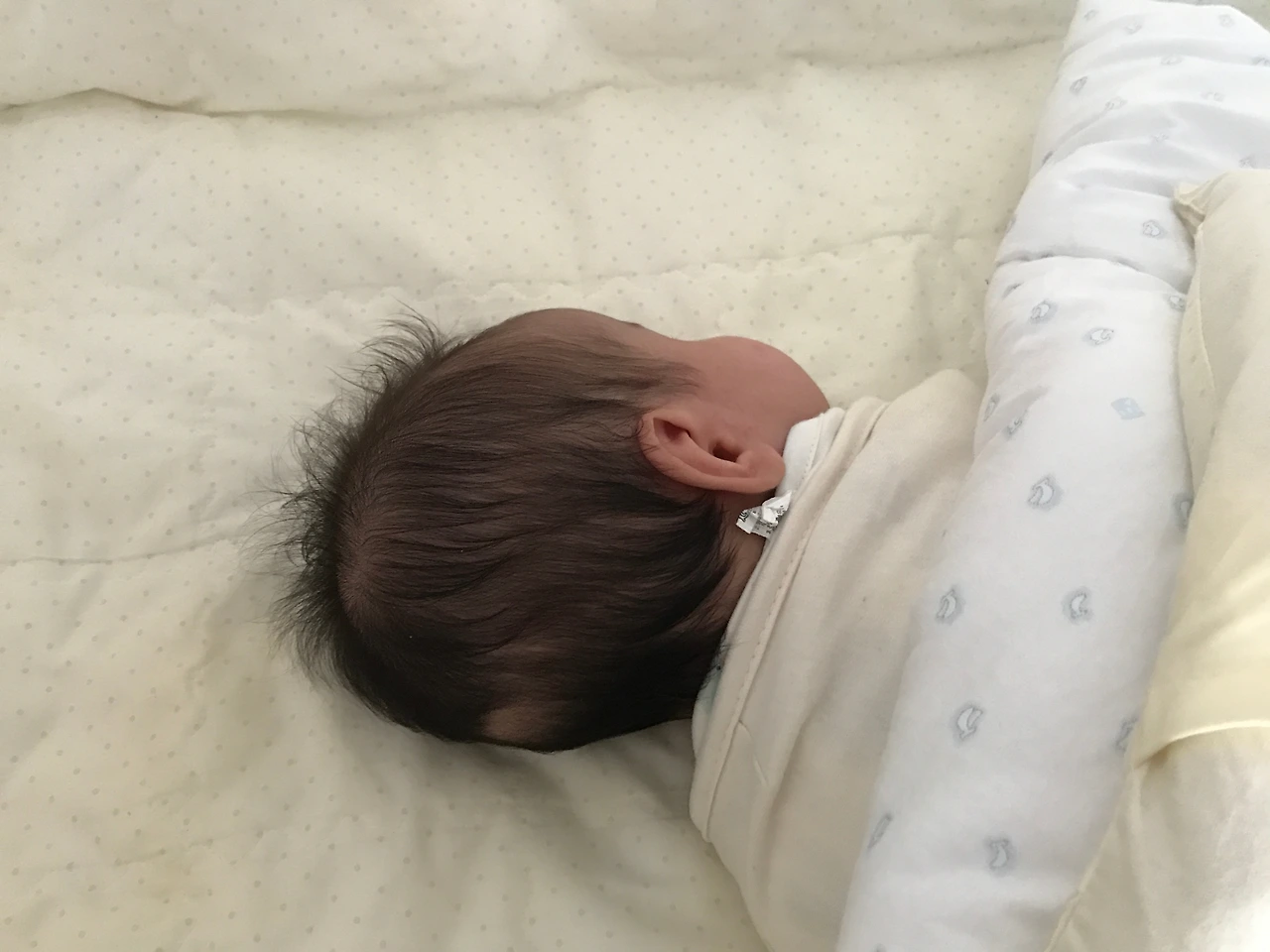 100일 이전에는 절대 엎어놓지 말라고들 하지만, 소율은 엎드려 재우면 훨씬 오래 잤기 때문에 그 유혹을 견디지 못하고 50일 이후에는 침대에 눕힐 때 거의 엎어놓았다. 처음엔 불안했는데 아기가 목을 빨리 가누는 편이어서 괜찮아 보였다. 원래 길어도 3~4시간이면 깨서 울었는데, 뒤집어 자는 것이 정착된 60일경부터 6시간씩 자기 시작하여 90일경 즈음에는 안 깨고 9~10시간씩 잤다. 엎어재우면 모로반사가 확실히 덜하고, 밤에 깨더라도 몸을 어떻게 움직이기가 힘들어서 그런지 혼자 힘써보다가 다시 잠드는 경우가 많았다.