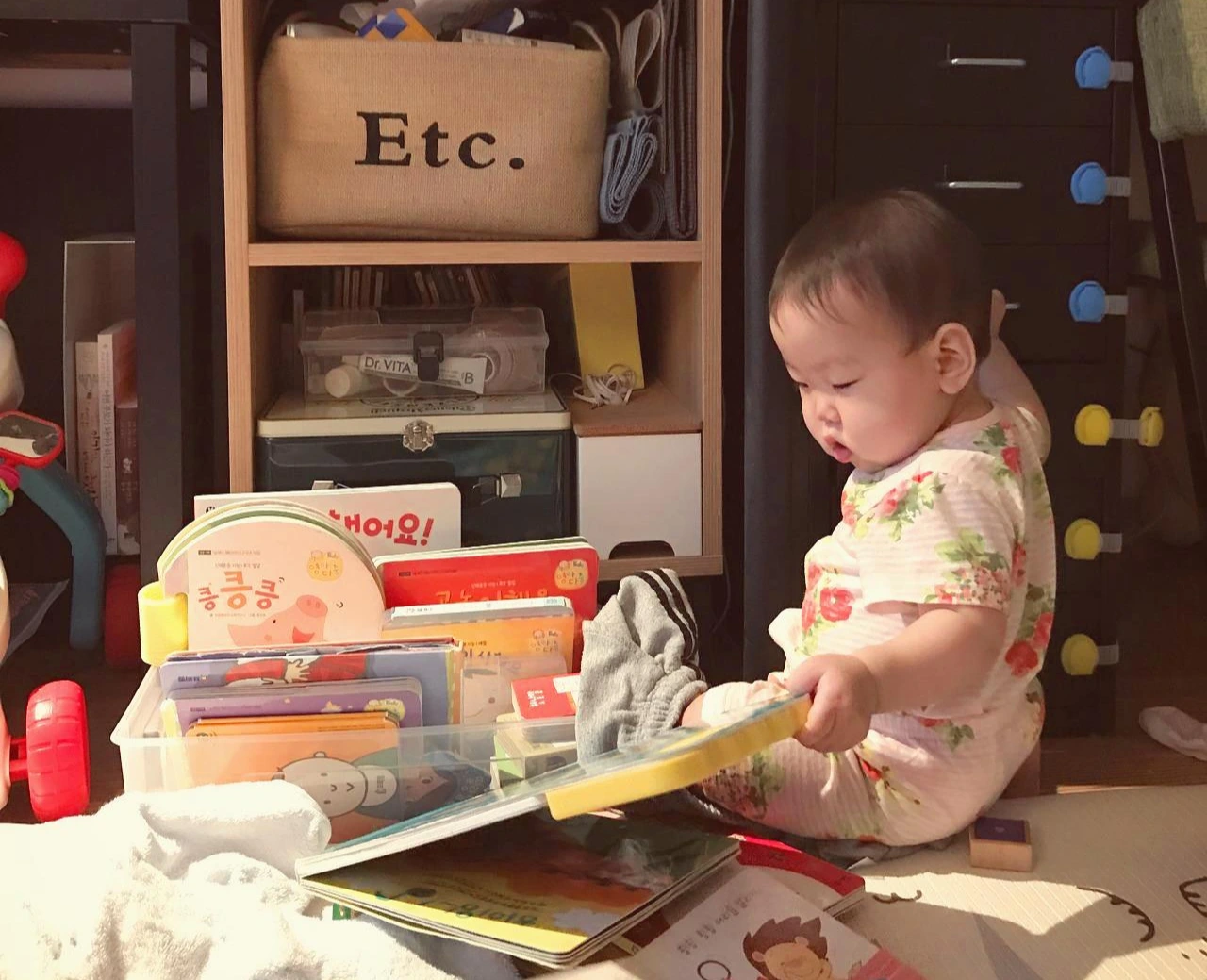 박스에 무언가를 집어넣을 줄 안다. 블럭을 블럭박스 안에 집어넣고, 목욕할 때에는 장난감 양동이에 물고기 장난감을 자꾸 집어넣는다. 며칠 전 부터 물고기로 양동이 주위를 탁탁 치면서 시도하는가 싶더니 금세 넣는 것을 터득했나 보다. 심지어 "물고기 양동이에 넣어주세요"라고 말하면 그렇게 한다. 왠지 그럴 때가 된 것 같아. 어제부터 자기 전에는 정리하기 놀이를 시작했다. "자~ 이제 잘 시간이야. 같이 장난감 정리하자." 하고 장난감 통에 하루종일 놀아서 흩어져 있는 장난감을 넣는 것. 물론 실질적인 정리는 나 혼자 다 하지만 조그마한 손이 거들어줄 날이 얼마 남지 않았을 것이다.