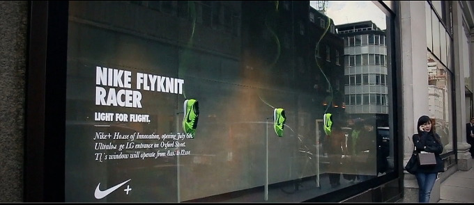 또, 영국 런던의 "Nike + Innovavtion Center"는 인터랙티브 윈도우가 나이키의 브랜딩에 의거하여 다양한 퍼포먼스를 선보인다. 인터랙티브 윈도우는 사람들이 지나가는 속도에 맞춰서 다양하게 반응하는 디스플레이로, 증강현실을 활용해 사람들에게 재미와 새로운 경험을 선사한다.