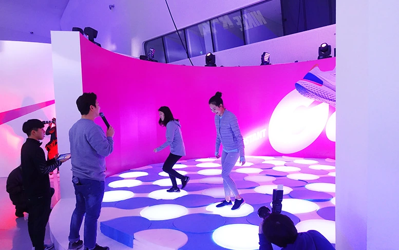 시간이 지나도 변함없는 나이키의 디지털 인스톨레이션 사랑은 신제품이 출시될 때마다 등장한다. 사람들에게 직접 체험해보게 함으로써 사람들의 흥미와 노이즈 마케팅을 유도한다.