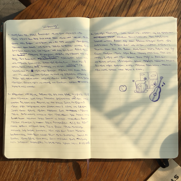 1. 가내수공업의 시작. 모든 것을 혼자서 하고 있다. (국가에서 공짜로 받아먹은 지원금은 내가 만든 돈이 아니라 '모든 것'의 범주에 끼워넣기 좀 그렇지만, 그건 그렇다고 쳐버리고 어쨌든이라는 말로 정리해 버린다. 어쨌든,) 싼 오디오 프리와 싼 마이크를 사놓고 악기에는 요즘 제일 평가가 좋다는 최고로 비싼 줄을 걸었지. 악기상이 내게 "이게 역사는 없지만 성능은 끝내줍니다"라고 말했을 때, 나는 그 줄을 걸면 내 악기에도 역사가 없어지는 건 아닐지 걱정이 들어서 '그냥 역사가 길고 익숙한 줄로 하고 싶은데요..'라고 말하진 못하고 호기심 충만한 청소년처럼 "그럼 해볼게요!" 하고는 집에 돌아와 역사 없이 끝내주게 반짝거리는 줄을 한동안 쳐다봤다. 어쨌든, 나는 더듬거리며 만든 내 음악을 좀 더 혼자의 것으로 다듬고 붙이고 갈아내는 작업을 하고 있다. 누군가가 아닌 나를 만족시키는 곡으로 나의 곡은 두 번째 삶을 맞이하는 중이라. 고되고 맥이 축 빠지는 순간은 무엇도 하기 전이라는 것을 나는 조금 안다. 그리하여 나는 지금 고되지도 않고 맥이 가득 찬 여름을 보내고 있다. 남동생이 떠나고 오빠가 떠나고 그리하여 내가 남은 방에 나는 비싼 줄을 건 나의 악기들과 싼 장비를 가득 진열해놓고 내 멋대로 편곡과 녹음을 반복하며 지낸다. 다음 주엔 양재동에 근사한 작업실에서 본격적인 녹음이 시작된다. 두근거리는 가슴으로 나는 내 노래를 다시 쓰다듬는다. 누구보다 나에게로 찬란할 가을을 기다리면서.