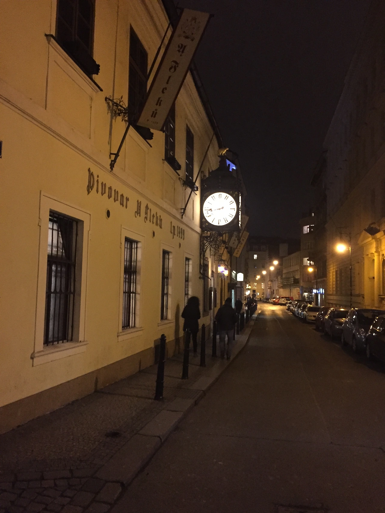 영업용 미소를 흘리는 바텐더가 둥그런 쟁반 위로 소주잔 같은 작은 잔에 든 꿀술을 되게 공짜인 것처럼 나눠주는데 족족 받아먹으면 나갈 때 프라하를 통째로 미워하게 된다. 한 잔 받아먹을 때마다 귀신처럼 꼼꼼하게 체크하여 계산하니 원하지 않는다면 다부지게 거절하는 것을 추천한다. 개인적으로 이 곳 흑맥주는 태어나서 마셔본 포터과의 흑맥주 중 가장 맛있다. 달지 않고 시원하게 꿀꺽꿀꺽 넘어가는 목 넘김, 그렇다고 밍밍한 건 절대 아닌 꽉 찬 맛이다. 커피나 초콜릿향보다는 보리향이 강하게 나서 장난 안 친 진짜 맥주 느낌이 난다. 1/5잔 정도 남으면 맥주를 한 가득 어깨에 싣고 다니는 바텐더가 새 맥주로 바꿔주고 가버린다. 당황해서 얼떨결에 새 맥주를 마시다 보면 계산할 때 깜짝 놀라게 된다! 도대체 어느 순간에 내 맥주잔을 세어 체크하는 건지 영영에 미궁이다. 아무래도 좋은 곳. 나를 프라하에 있게 하는 맥주.