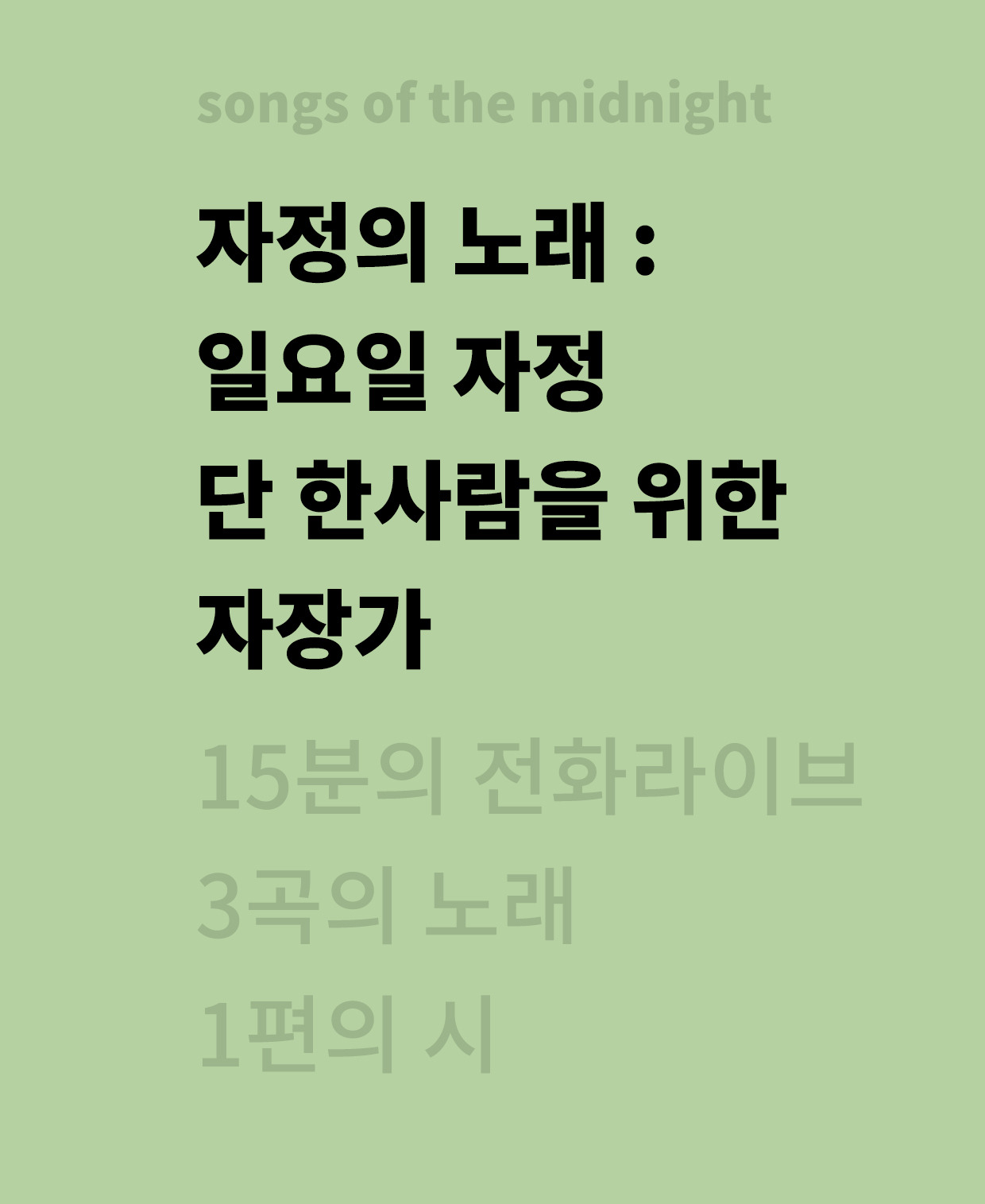 15분간 이어질 단 한 사람만을 위한 이 라이브는 3곡의 노래와 시를 한 편을 읽어드리는 시간입니다.