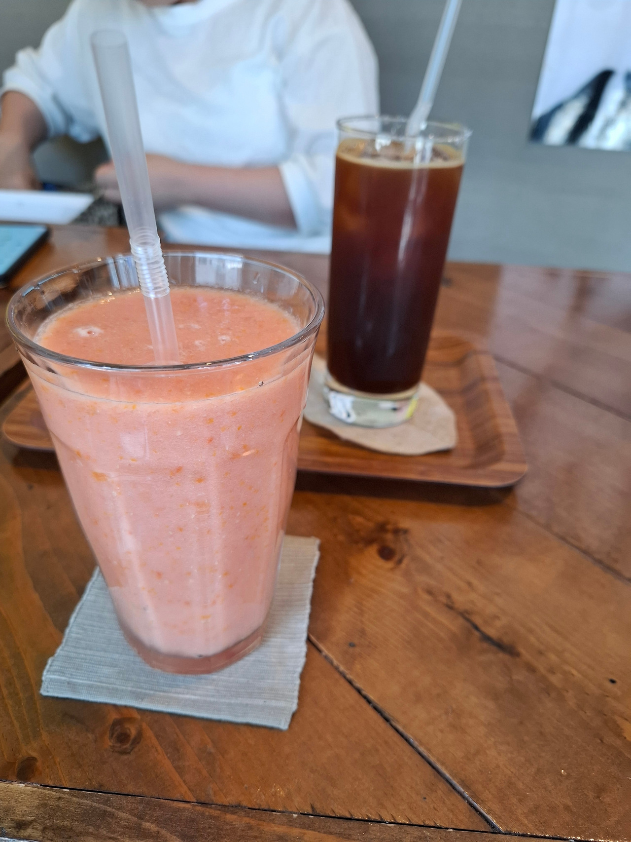 그 후 바로 옆에 있는 카페로 피신해 각자 커피와 토마토 주스를 사 마시며 수다를 떨었습니다. 이렇게 민생지원금을 다 써버렸네요. 참고로 식사 전에는 헬스장에서 신을 실내 운동화, 어머니 샌들을 사드렸습니다. 그랬더니 훌쩍, 7000원 밖에 남지 않았지 뭡니까.