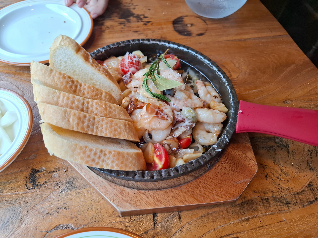 두 번째로는 감바스! 어디에나 먹어도 잘 어울리는 감바스는 빵도 촉촉하고 해물도 잘 넣어줘서 맛있게 먹었습니다. 익힌 방울토마토는 왜 이렇게 맛있을까?라는 동생의 질문에 속으로 저도 갸우뚱하면서 그러게 하고 맛있는 축복을 맛봤습니다. 버섯도 많이 들어가 있어서 만족스러웠습니다.