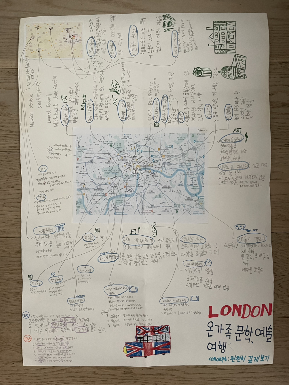 일기는 하루에 한두 쪽씩 쓰도록 했고, 아이는 다이어리를 들고 다니며 테이트 모던 6층 레스토랑에서 세인트폴 성당을 그리기도 했다. 여행 첫날 워터스톤스에서 산 두 권의 책은 여행 내내 손에서 놓지 않았고, 결국 마지막 날까지 모두 읽었다.