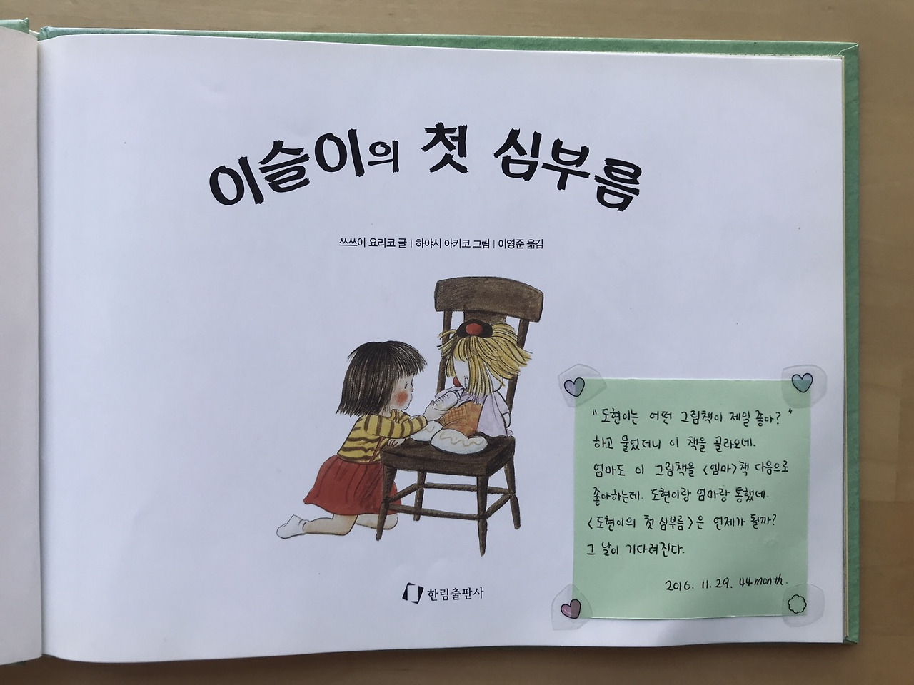 아이가 어렸을 때 좋아했던 그림책 중에 <이슬이의 첫 심부름>이란 책이 있다. 책 속에 이슬이는 엄마 심부름으로 우유를 사러 갔는데 크게 나오지 않는 목소리, 자동차 소음, 다른 손님들 때문에 계속 주문하지 못해 애가 탄다. 아이가 겪은 상황과 거의 비슷하다. 책에서는 가게 아주머니가 마침내 이슬이를 알아봐 주시고, 지나친 것에 대해 몇 번이나 미안하다고 사과를 하신다. 이슬이는 그제야 마음이 놓여 눈물 한 방울을 똑 흘리고 만다.